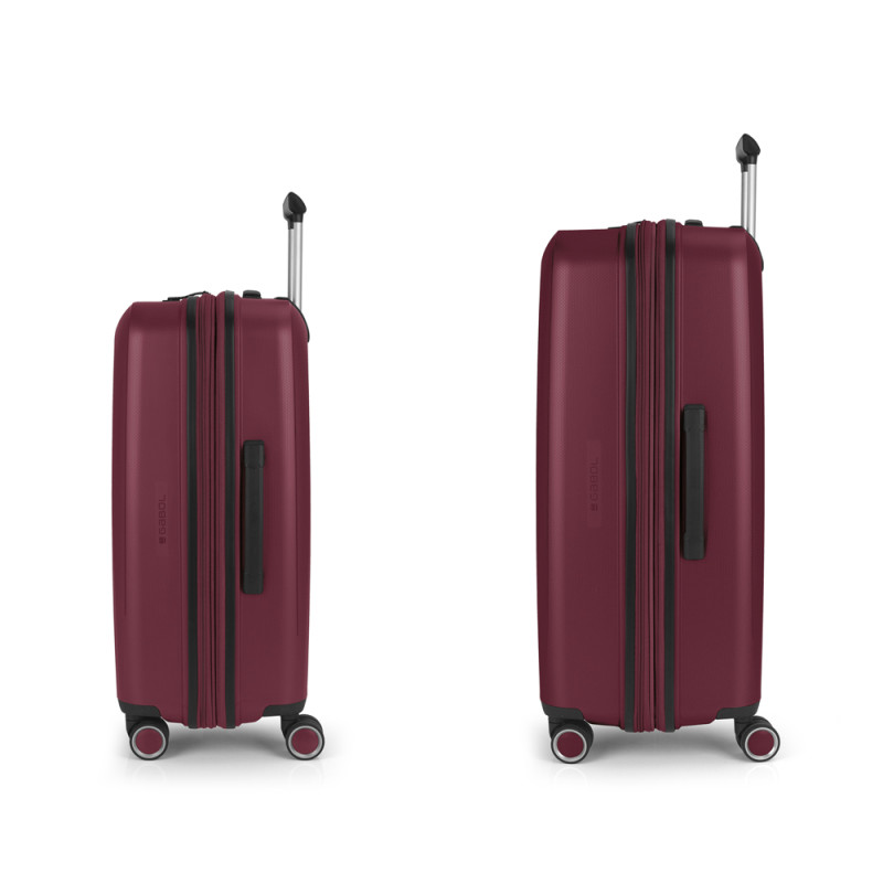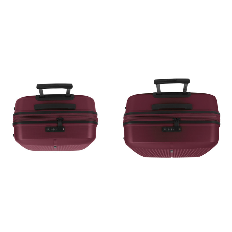 Juego de 2 maletas (Mediana y Grande) rígidas y 4 ruedas dobles multidirección. Expandibles en todos los tamaños. Fabricadas en Polipropileno. Su interior esta compuesto por un forro de material reciclado, con doble separador y bolsllos. Cremallera de seguridad. Cerradura TSA. 10 años de garantía. Medidas sin y con expandible: Maleta Mediana: 45x65x27/30 cm - Peso: 3,4 kg - Capacidad: 70/77,8 L. Maleta Grande: 51x75x31/34 cm - Peso: 4,5 kg - Capacidad: 109/119,6 L.