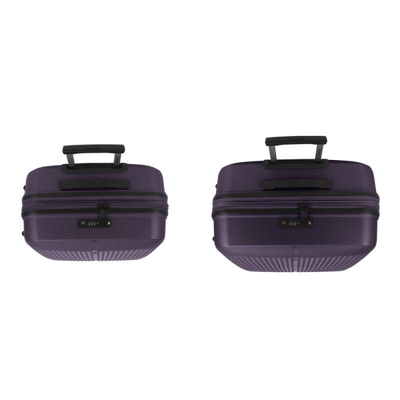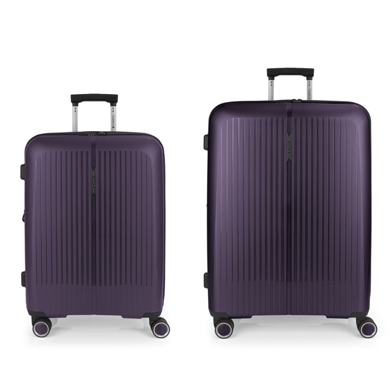 Juego de 2 maletas (Mediana y Grande) rígidas y 4 ruedas dobles multidirección. Expandibles en todos los tamaños. Fabricadas en Polipropileno. Su interior esta compuesto por un forro de material reciclado, con doble separador y bolsllos. Cremallera de seguridad. Cerradura TSA. 10 años de garantía. Medidas sin y con expandible: Maleta Mediana: 45x65x27/30 cm - Peso: 3,4 kg - Capacidad: 70/77,8 L. Maleta Grande: 51x75x31/34 cm - Peso: 4,5 kg - Capacidad: 109/119,6 L.