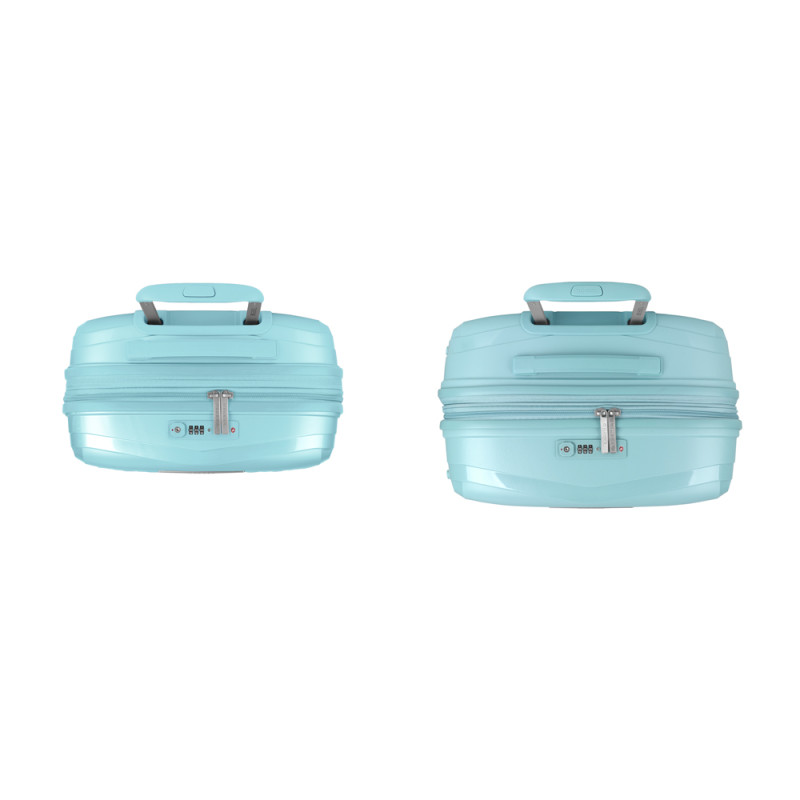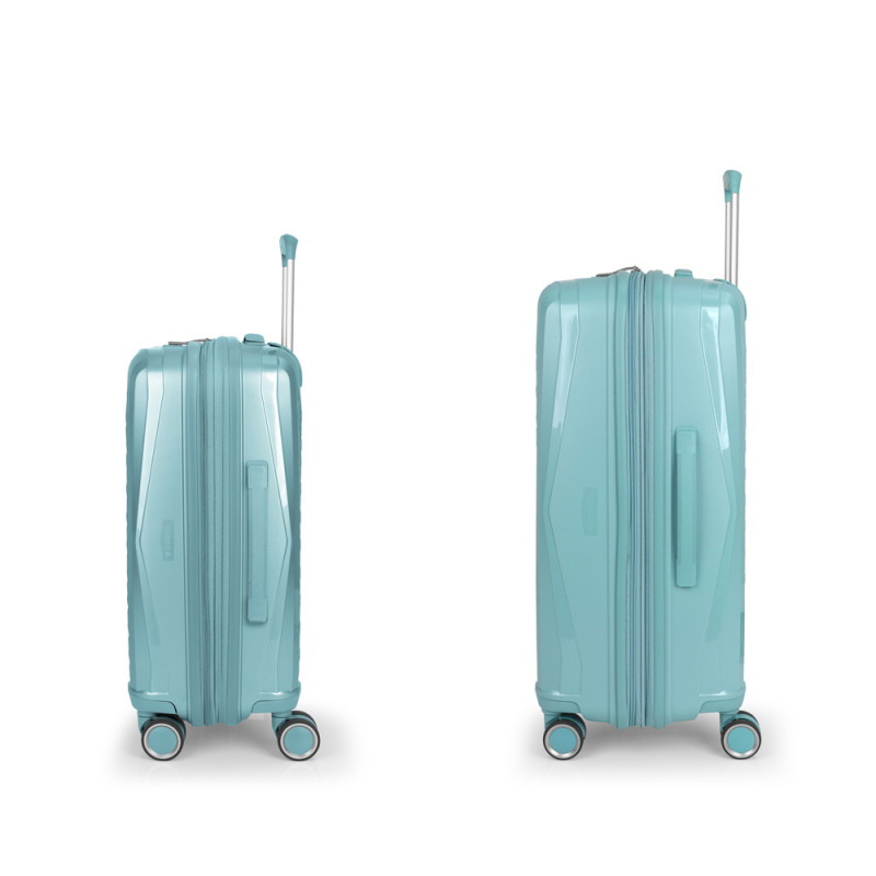 Juego de 2 maletas (Cabina y Mediana) rígidas, expandibles y 4 ruedas dobles multidirección. Fabricadas en polipropileno. Su interior está compuesto por un forro de material reciclado de alta calidad con doble separador y bolsillo. Cerradura TSA. Medidas sin y con expandible: Maleta Cabina: 40x54x22/25 cm - Peso: 2,8 kg - Capacidad: 42,1/47,9 L. Maleta Mediana: 44x64,5x28/31 cm - Peso: 3,3 kg - Capacidad: 72,5/80,2 L.