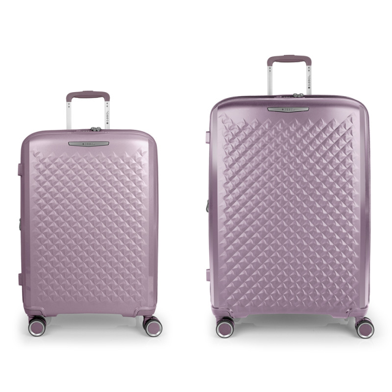 Juego de 2 maletas (mediana y grande) rígidas, expandibles y 4 ruedas dobles multidirección. Fabricadas en polipropileno. Su interior está compuesto por un forro de material reciclado de alta calidad con doble separador y bolsillo. Cerradura TSA. Medidas sin y con expandible: Maleta Mediana: 44x64,5x28/31 cm - Peso: 3,3 kg - Capacidad: 72,5/80,2 L. Maleta Grande:51x75x31/34 cm - Peso: 4,3 kg - Capacidad: 109,6/120,2L.