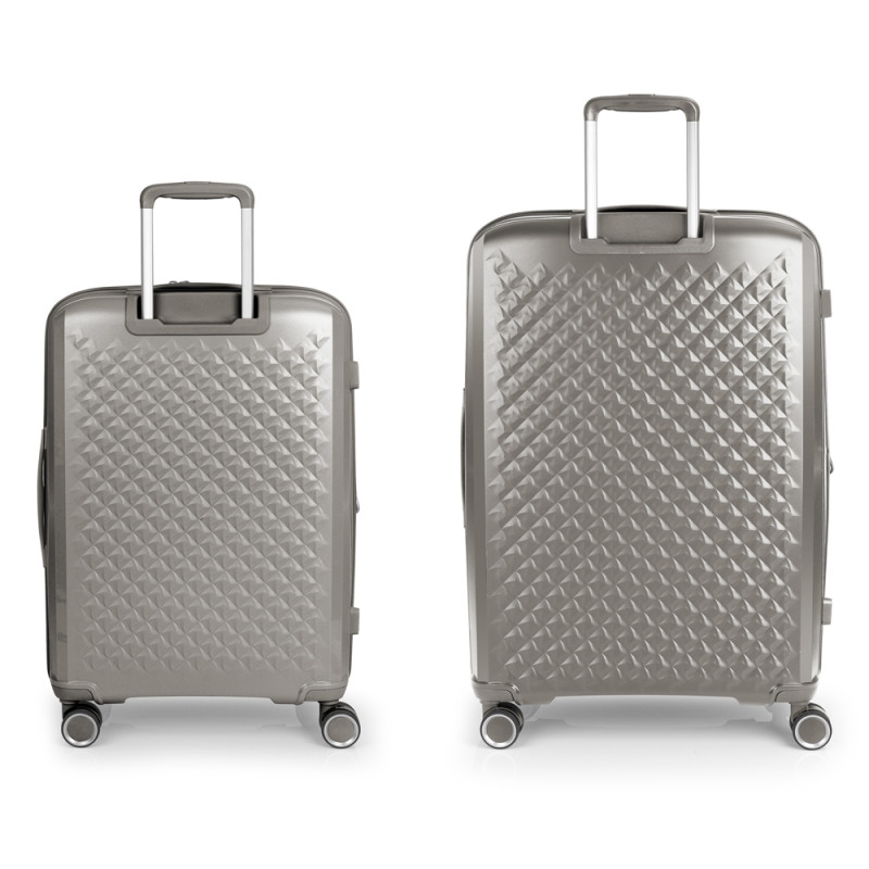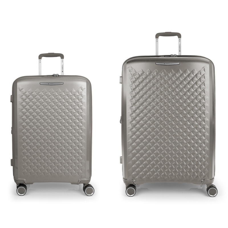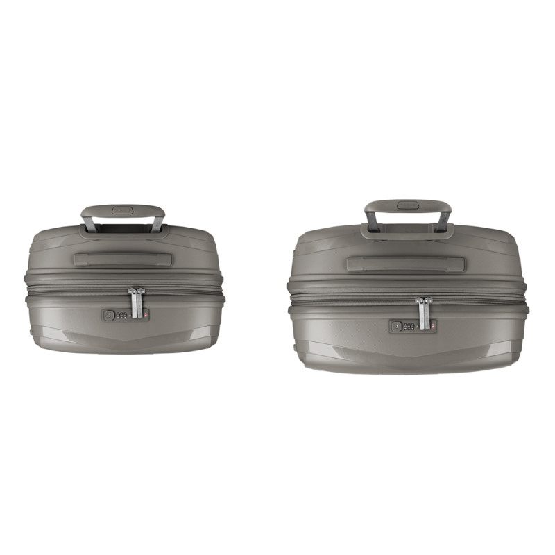 Juego de 2 maletas (mediana y grande) rígidas, expandibles y 4 ruedas dobles multidirección. Fabricadas en polipropileno. Su interior está compuesto por un forro de material reciclado de alta calidad con doble separador y bolsillo. Cerradura TSA. Medidas sin y con expandible: Maleta Mediana: 44x64,5x28/31 cm - Peso: 3,3 kg - Capacidad: 72,5/80,2 L. Maleta Grande:51x75x31/34 cm - Peso: 4,3 kg - Capacidad: 109,6/120,2L.