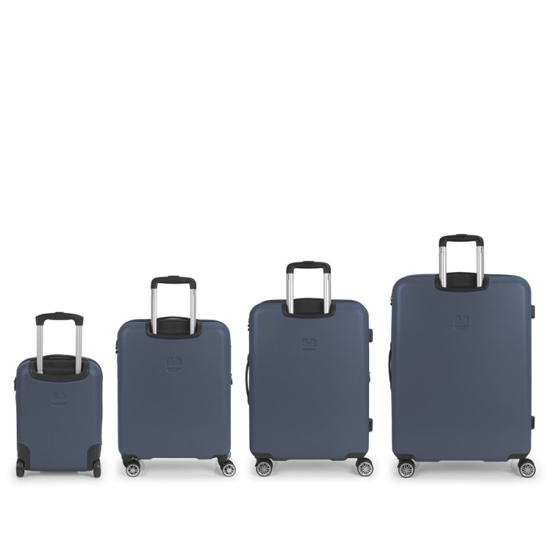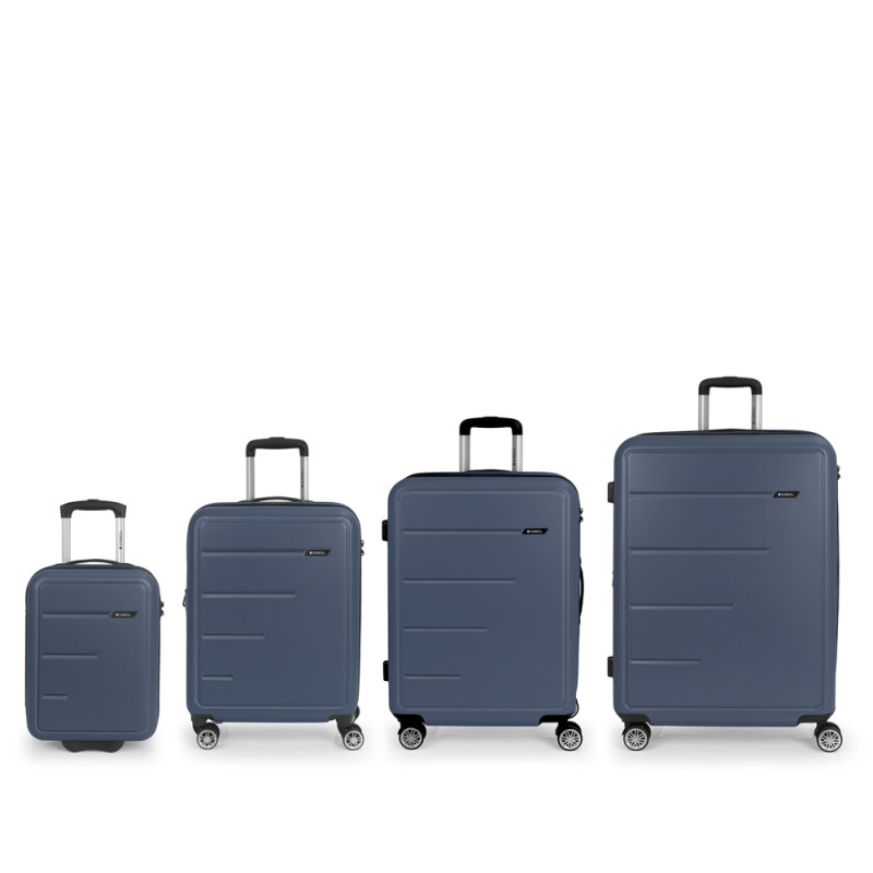 Juego de 4 maletas (Equipaje de mano, cabina, mediana y grande) expandibles en los tamaños de cabina, mediana y grande, con capacidad hasta 240 L. Fabricadas en ABS. Su interior esta compuesto por un forro, con un separador y un bolsillo. El equipaje de mano cuenta con 2 ruedas simples. El resto de tamaños cuentan con 4 ruedas dobles multidirección. Cerradura de combinación. Medidas sin y con expandible: Maleta XS: 30x42x20 cm - Peso: 2,4 Kg - Capacidad 22,8 L. Maleta cabina: 40x55x21/24cm - Peso: 3,1 kg - Capacidad: 41,1/47 L. Maleta mediana: 47x66x27/30 cm - Peso: 3,9 kg - Capacidad: 70,3/78 L. Maleta grande: 54x76x30/33 cm - Peso: 4,7 kg - Capacidad: 105,5/116,1 L.