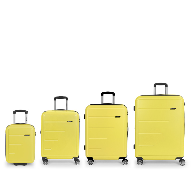 Juego de 4 maletas (Equipaje de mano, cabina, mediana y grande) expandibles en los tamaños de cabina, mediana y grande, con capacidad hasta 240 L. Fabricadas en ABS. Su interior esta compuesto por un forro, con un separador y un bolsillo. El equipaje de mano cuenta con 2 ruedas simples. El resto de tamaños cuentan con 4 ruedas dobles multidirección. Cerradura de combinación. Medidas sin y con expandible: Maleta XS: 30x42x20 cm - Peso: 2,4 Kg - Capacidad 22,8 L. Maleta cabina: 40x55x21/24cm - Peso: 3,1 kg - Capacidad: 41,1/47 L. Maleta mediana: 47x66x27/30 cm - Peso: 3,9 kg - Capacidad: 70,3/78 L. Maleta grande: 54x76x30/33 cm - Peso: 4,7 kg - Capacidad: 105,5/116,1 L.