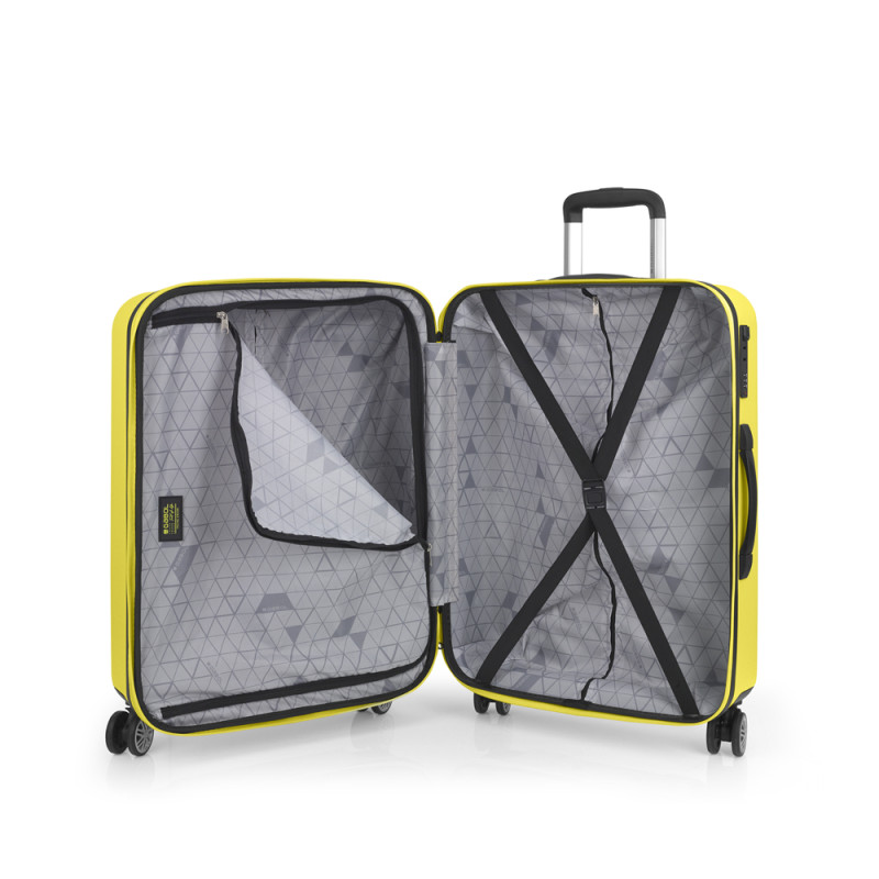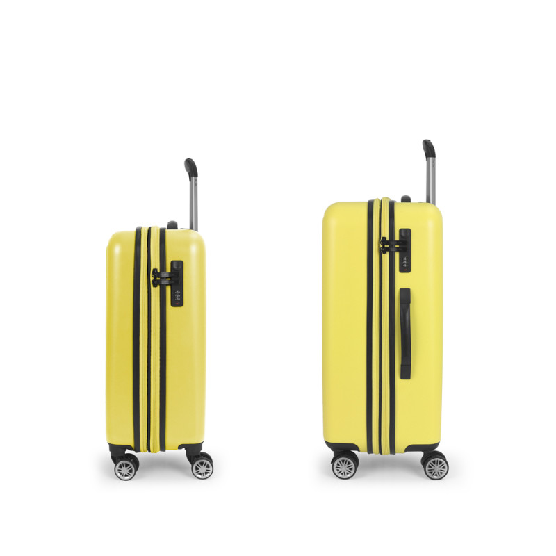 Juego de 2 maletas rígidas (cabina y mediana) expandibles en todos los tamaños, con capacidad hasta 111 L. Fabricadas en ABS. Su interior esta compuesto por un forro, con un separador y un bolsillo. Cuentan con 4 ruedas dobles multidirección. Cerradura de combinación. Medidas sin y con expandible: Maleta cabina: 40x55x21/24cm - Peso: 3,1 kg - Capacidad: 41,1/47 L. Maleta mediana: 47x66x27/30 cm - Peso: 3,9 kg - Capacidad: 70,3/78 L.