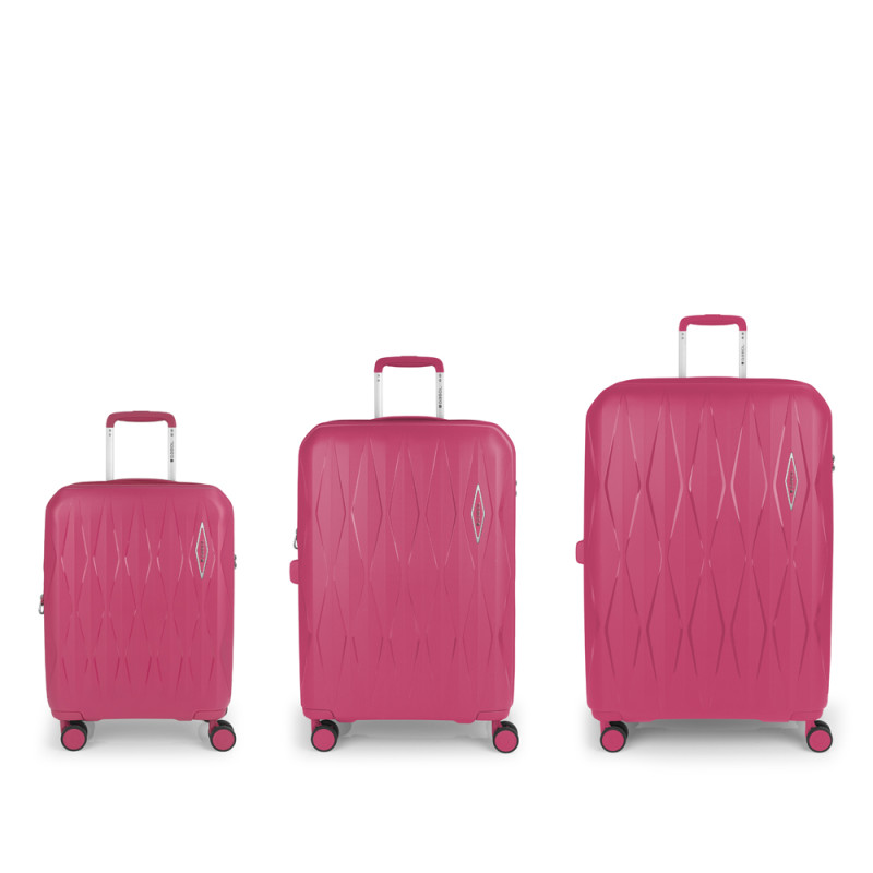 Juego de 3 maletas rígidas (cabina, mediana y grande) expandibles en todos los tamaños, con capacidad hasta 220 L. Fabricadas en polipropileno. Su interior esta compuesto por un forro de material reciclado, con doble separador y bolsllos. 4 ruedas dobles multidirección. Cremallera de seguridad. Cerradura TSA. 10 años de garantía. Medidas sin y con expandible: Maleta cabina: 38x55x22/25 cm - Peso: 2,5 kg - Capacidad: 40,4/46 L. Maleta mediana: 45x66x27/30 cm - Peso: 3,2 kg - Capacidad: 71,3/79,2 L. Maleta grande: 55x75x32/35 cm - Peso: 3,9 kg - Capacidad: 108,7/119 L.