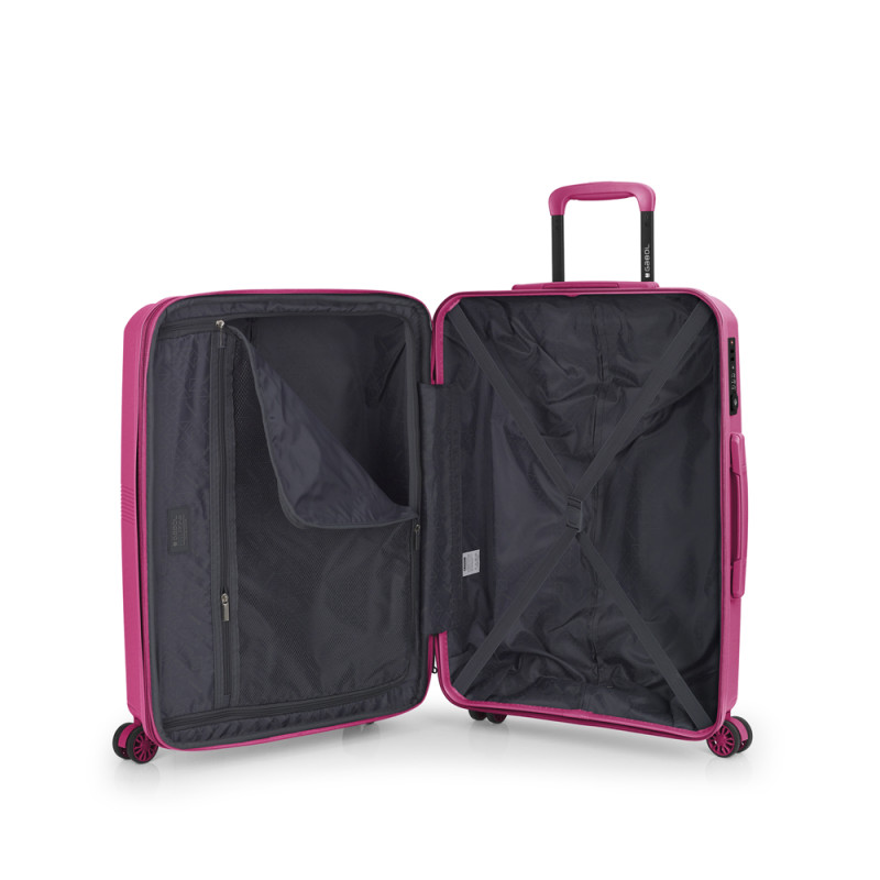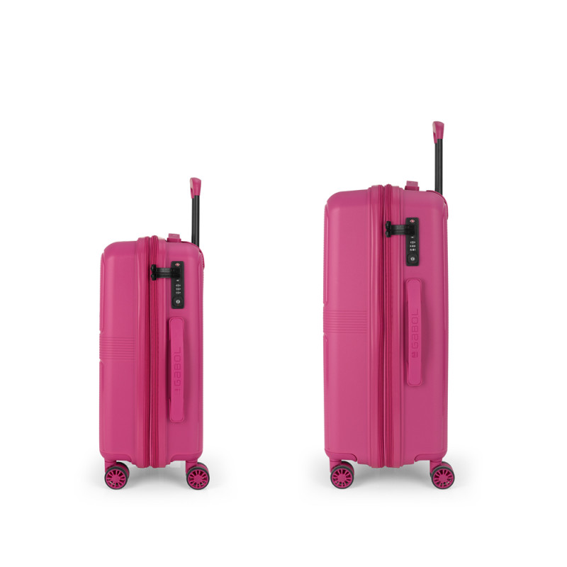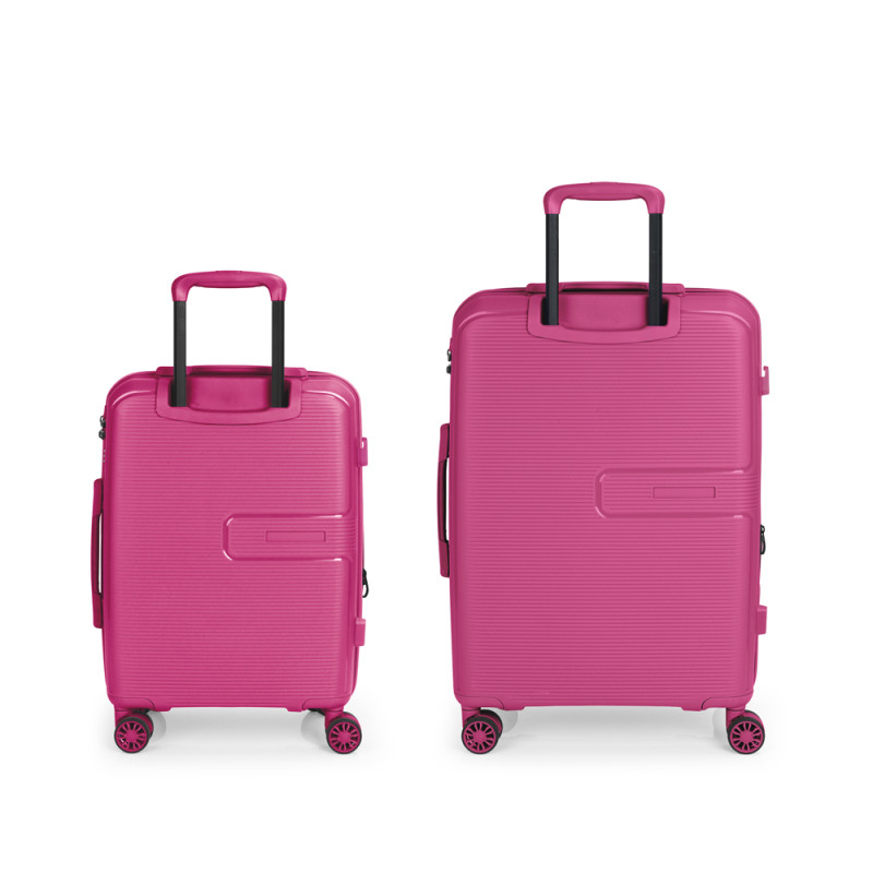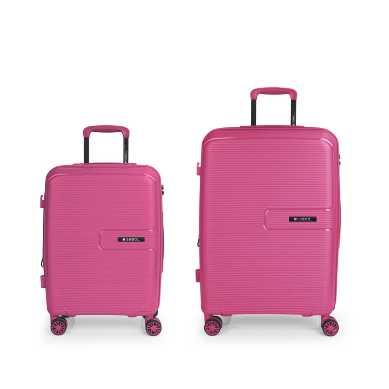 Juego de 2 maletas rígidas (cabina y mediana) expandibles en todos los tamaños, con capacidad hasta 102 L. Fabricadas en polipropileno. Su interior esta compuesto por un forro, con un separador y un bolsillo. 4 ruedas dobles multidirección. Cerradura de combinación. Medidas sin y con expandible: Maleta cabina: 39x54x22/25 cm - Peso: 2,7 kg - Capacidad: 38/43,2 L. Maleta mediana: 45x64x26/29 cm - Peso: 3,4 kg - Capacidad: 63,3/70,6 L.