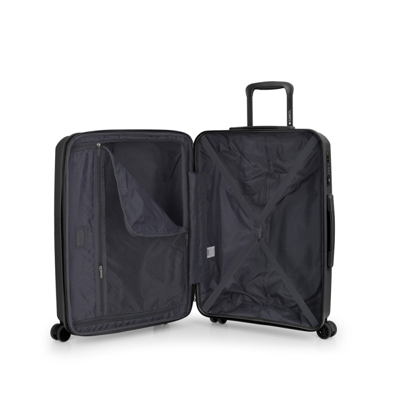 Juego de 2 maletas rígidas (cabina y mediana) expandibles en todos los tamaños, con capacidad hasta 102 L. Fabricadas en polipropileno. Su interior esta compuesto por un forro, con un separador y un bolsillo. 4 ruedas dobles multidirección. Cerradura de combinación. Medidas sin y con expandible: Maleta cabina: 39x54x22/25 cm - Peso: 2,7 kg - Capacidad: 38/43,2 L. Maleta mediana: 45x64x26/29 cm - Peso: 3,4 kg - Capacidad: 63,3/70,6 L.