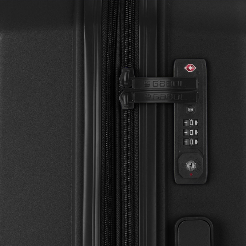 ASA LATERAL CABINA EXPANDIBLE FORRO: ESTAMPADO MATERIAL FORRO: POLIESTER 210 MODELO CERRADURA: CB-60A SEGURIDAD: CERRADURA TSA SEPARADOR: SENCILLO SISTEMA DE CIERRE: CREMALLERAS NYLON SISTEMA DE RUEDAS: 4 RUEDAS DOBLES