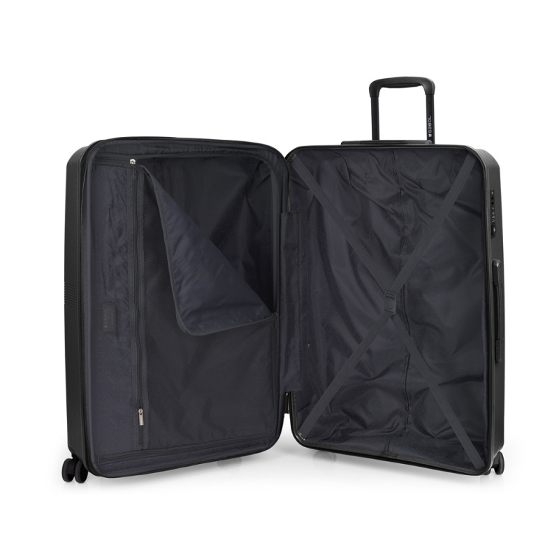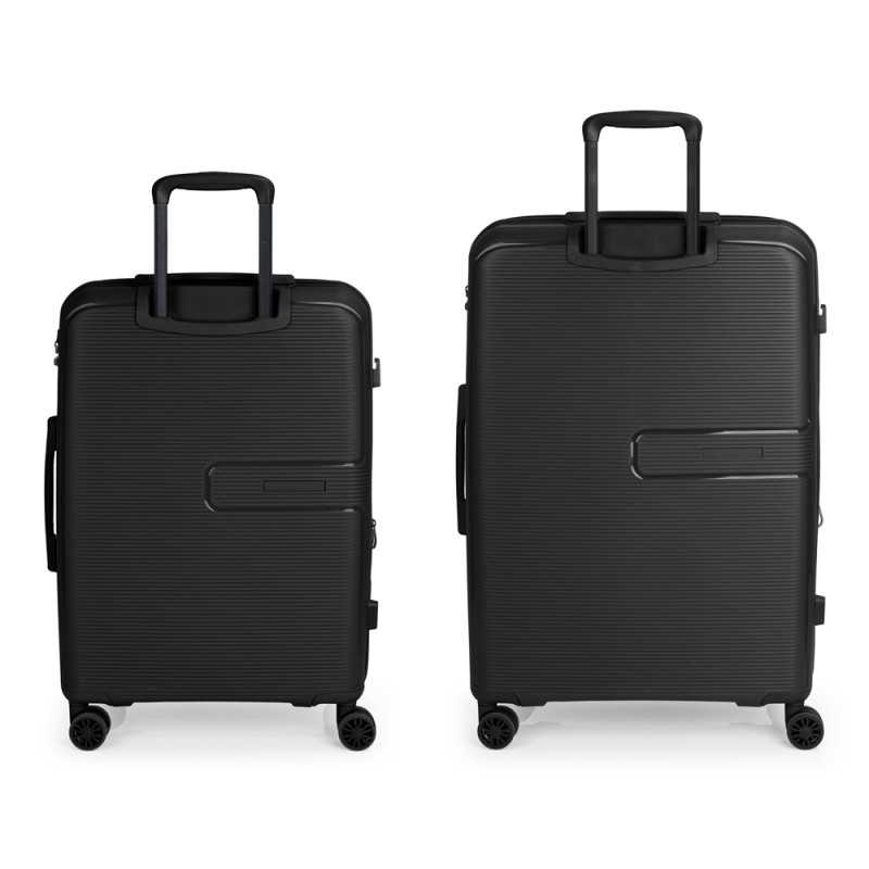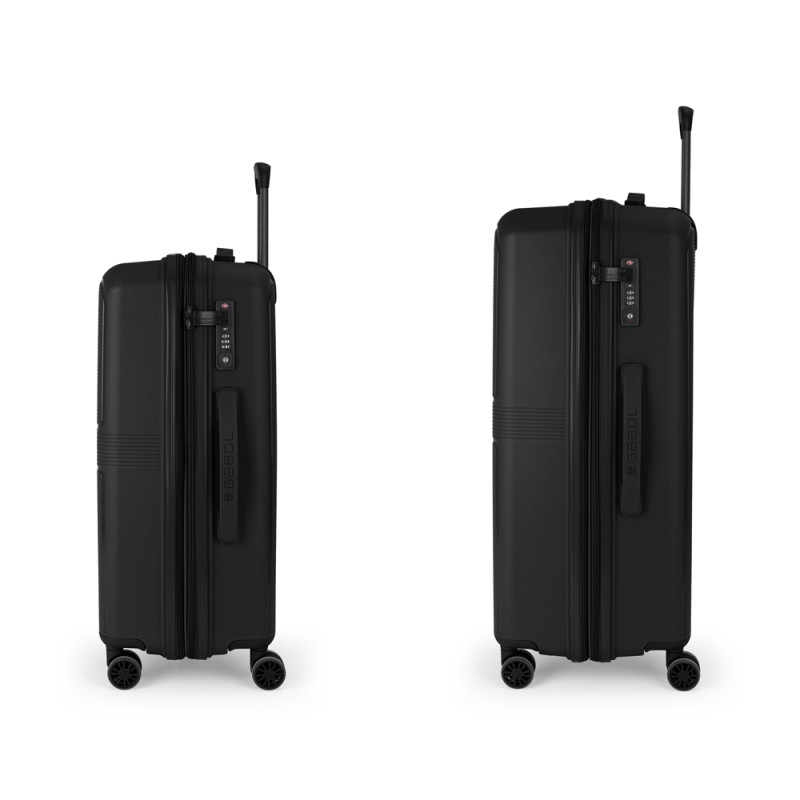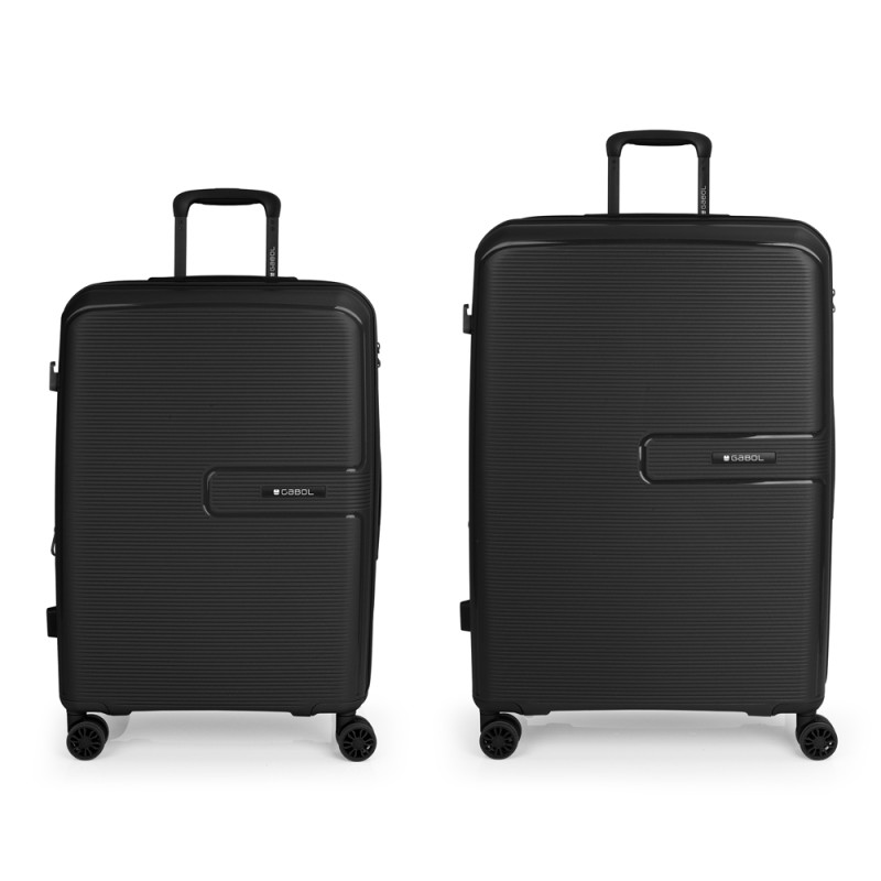 Juego de 2 maletas rígidas (mediana y grande) expandibles en todos los tamaños, con capacidad hasta 157 L. Fabricadas en polipropileno. Su interior esta compuesto por un forro, con un separador y un bolsillo. 4 ruedas dobles multidirección. Cerradura de combinación. Medidas sin y con expandible: Maleta mediana: 45x64x26/29 cm - Peso: 3,4 kg - Capacidad: 63,3/70,6 L. Maleta grande: 50x74x29/32 cm - Peso: 4,2 kg - Capacidad: 93,7/103,4 L.