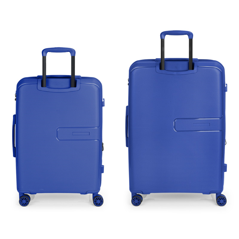 Juego de 2 maletas rígidas (mediana y grande) expandibles en todos los tamaños, con capacidad hasta 157 L. Fabricadas en polipropileno. Su interior esta compuesto por un forro, con un separador y un bolsillo. 4 ruedas dobles multidirección. Cerradura de combinación. Medidas sin y con expandible: Maleta mediana: 45x64x26/29 cm - Peso: 3,4 kg - Capacidad: 63,3/70,6 L. Maleta grande: 50x74x29/32 cm - Peso: 4,2 kg - Capacidad: 93,7/103,4 L.