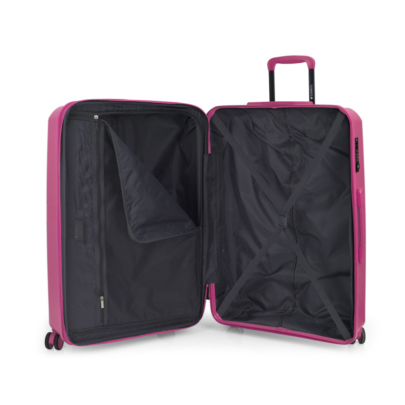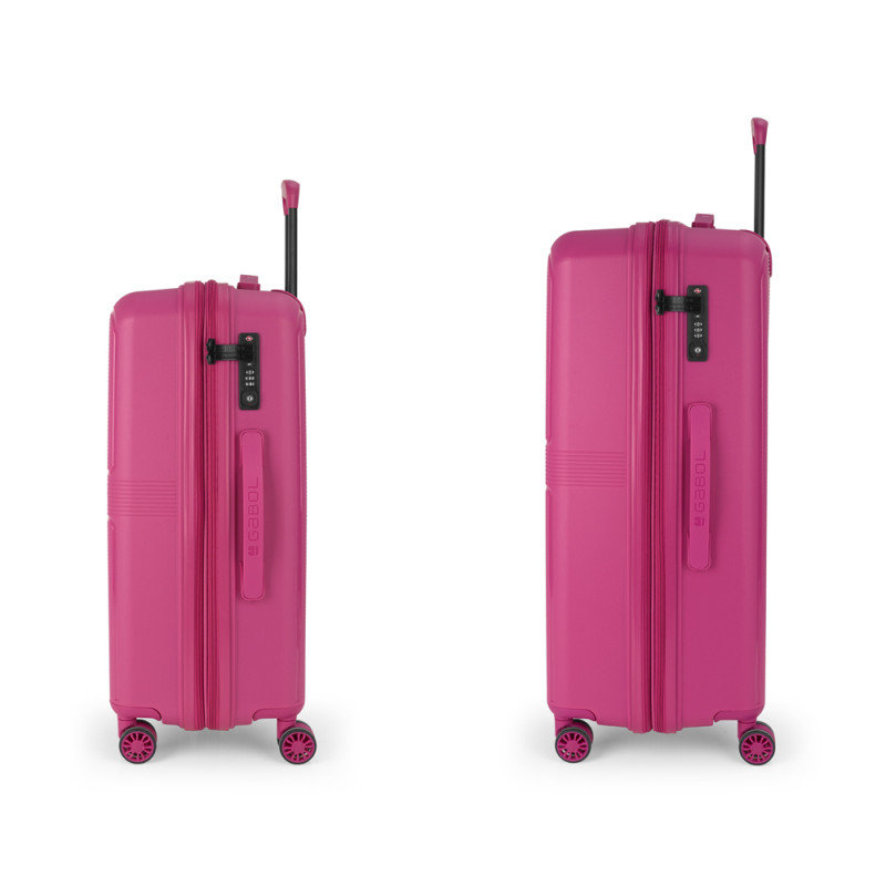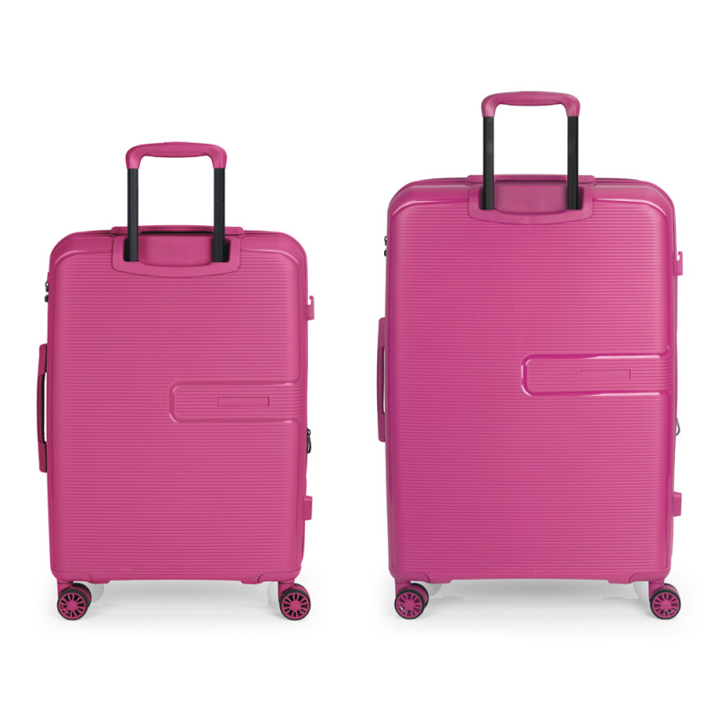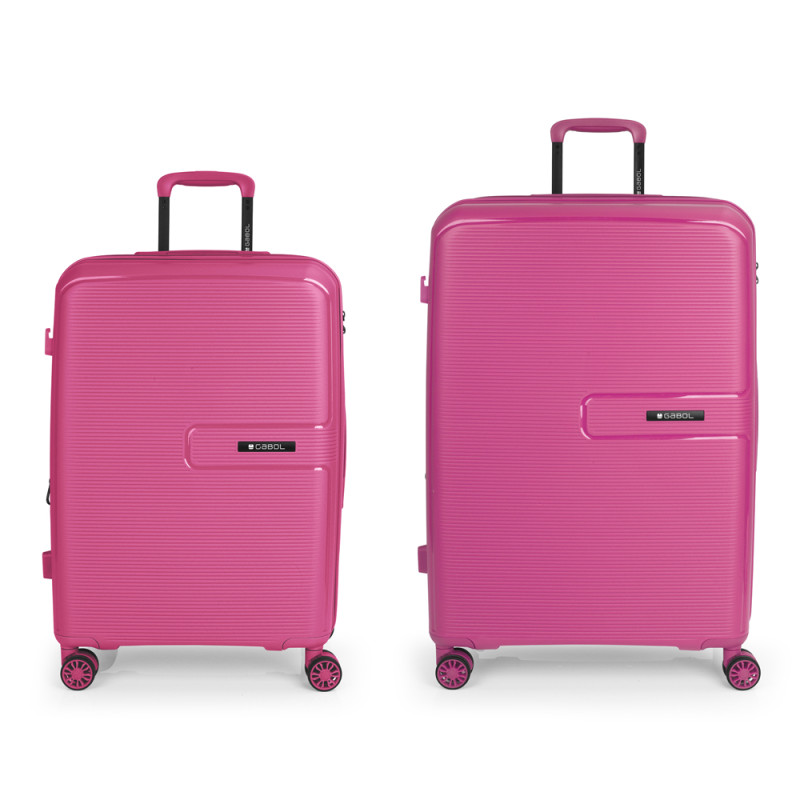 Juego de 2 maletas rígidas (mediana y grande) expandibles en todos los tamaños, con capacidad hasta 157 L. Fabricadas en polipropileno. Su interior esta compuesto por un forro, con un separador y un bolsillo. 4 ruedas dobles multidirección. Cerradura de combinación. Medidas sin y con expandible: Maleta mediana: 45x64x26/29 cm - Peso: 3,4 kg - Capacidad: 63,3/70,6 L. Maleta grande: 50x74x29/32 cm - Peso: 4,2 kg - Capacidad: 93,7/103,4 L.