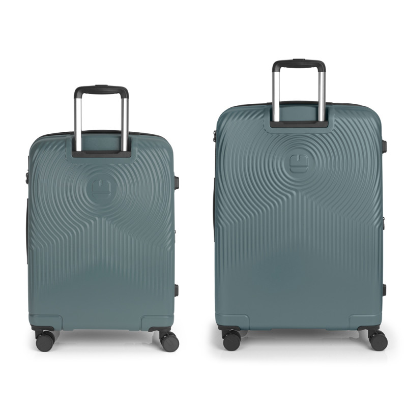 Juego de 2 maletas rígidas (mediana y grande) expandibles en todos los tamaños, con capacidad hasta 187 L. Fabricadas en Policarbonato. Su interior esta compuesto por un forro de material reciclado, con doble separador y bolsllos. 4 ruedas dobles multidirección. Cremallera de seguridad. Cerradura TSA. 10 años de garantía. Medidas sin y con expandible: Maleta mediana: 45x65x28/31 cm - Peso: 3,6 kg - Capacidad: 72,6/80,4 L. Maleta grande: 51x76x33/37 cm - Peso: 4,6 kg - Capacidad: 114/128 L.