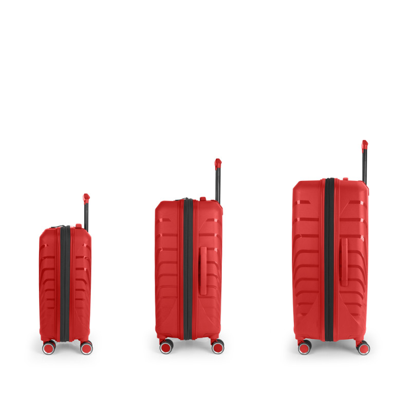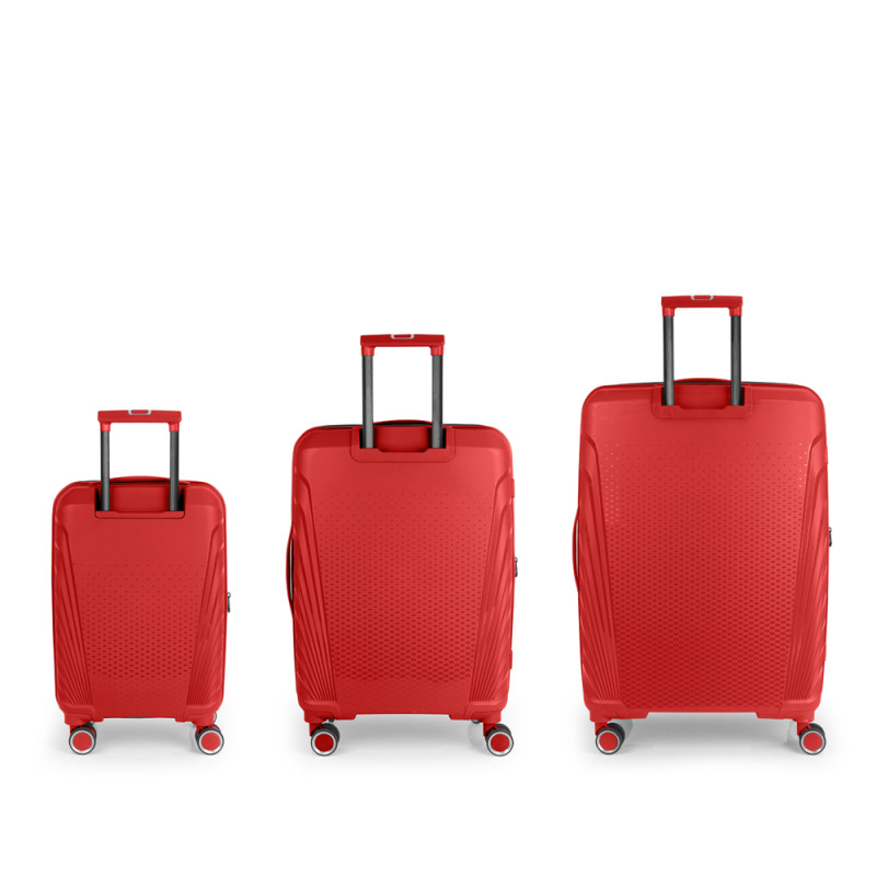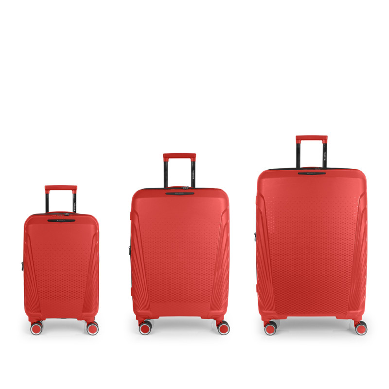 El juego de 3 maletas (Cabina, Mediana y Grande) rígidas SOHO cuenta con 4 ruedas dobles multidirección. Están fabricadas en Polipropileno, y su interior está compuesto por un forro de material reciclado de alta calidad e incluye separadores, cintas de sujeción para una mejor organización y bolsillo. Incorpora una cerradura TSA para viajar con total seguridad, además de llevar cremallera de seguridad para una mayor protección del contenido. Las medidas se explican sin y con expandible: Maleta Cabina: 55 x 35 x 21/24 cm, una capacidad de 35,3/40,3L y un peso de 2,8 kg. Maleta Mediana: 47x67x27/30 cm, un volumen de 71,2/79,2L y su peso de 3,4 kg. Maleta Grande: 53 x 77 x 22 cm | Capacidad: 110,6 /121,3L | Peso: 4,5 kg.