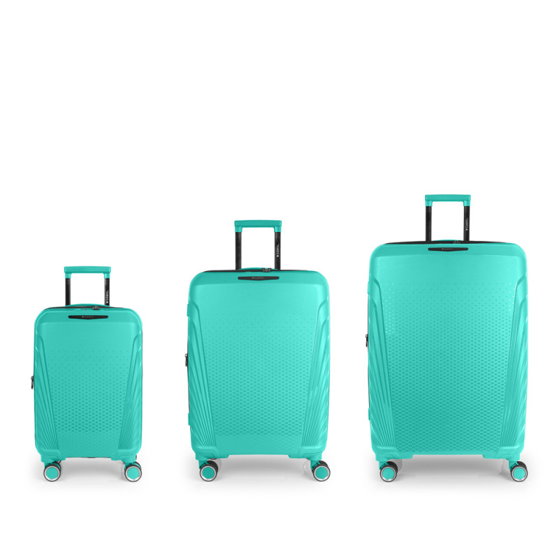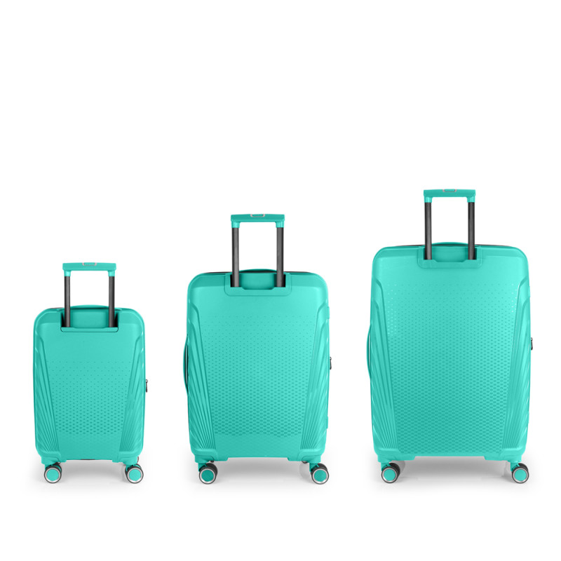 El juego de 3 maletas (Cabina, Mediana y Grande) rígidas SOHO cuenta con 4 ruedas dobles multidirección. Están fabricadas en Polipropileno, y su interior está compuesto por un forro de material reciclado de alta calidad e incluye separadores, cintas de sujeción para una mejor organización y bolsillo. Incorpora una cerradura TSA para viajar con total seguridad, además de llevar cremallera de seguridad para una mayor protección del contenido. Las medidas se explican sin y con expandible: Maleta Cabina: 55 x 35 x 21/24 cm, una capacidad de 35,3/40,3L y un peso de 2,8 kg. Maleta Mediana: 47x67x27/30 cm, un volumen de 71,2/79,2L y su peso de 3,4 kg. Maleta Grande: 53 x 77 x 22 cm | Capacidad: 110,6 /121,3L | Peso: 4,5 kg.