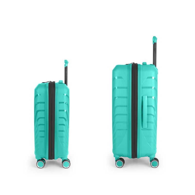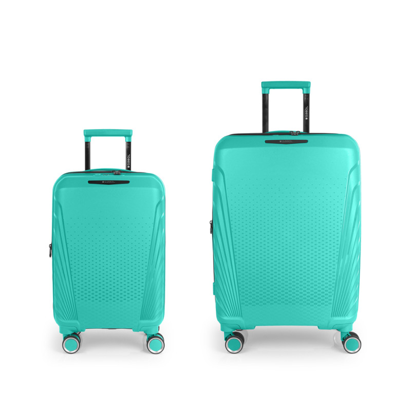El juego de 2 maletas (Cabina, Mediana) rígidas SOHO cuenta con 4 ruedas dobles multidirección. Están fabricadas en Polipropileno, y su interior está compuesto por un forro de material reciclado de alta calidad e incluye separadores, cintas de sujeción para una mejor organización y bolsillo. Incorpora una cerradura TSA para viajar con total seguridad, además de llevar cremallera de seguridad para una mayor protección del contenido. Las medidas se explican sin y con expandible: Maleta Cabina: 55 x 35 x 21/24 cm, una capacidad de 35,3/40,3L y un peso de 2,8 kg. Maleta Mediana: 47x67x27/30 cm, un volumen de 71,2/79,2L y su peso de 3,4 kg.