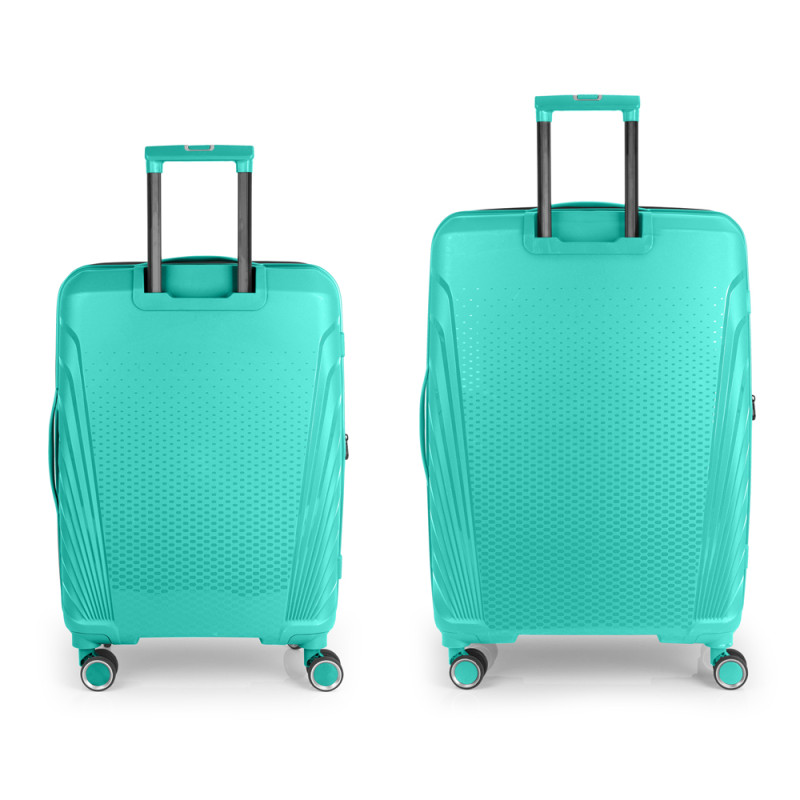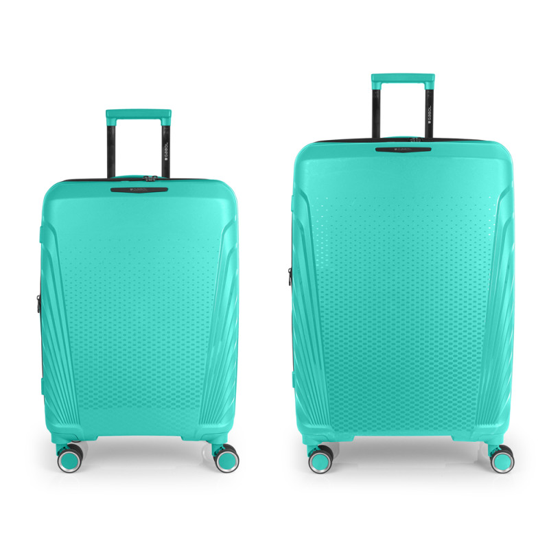 El juego de 2 maletas (Mediana y Grande) rígidas SOHO cuenta con 4 ruedas dobles multidirección. Están fabricadas en Polipropileno, y su interior está compuesto por un forro de material reciclado de alta calidad e incluye separadores, cintas de sujeción para una mejor organización y bolsillo. Incorpora una cerradura TSA para viajar con total seguridad, además de llevar cremallera de seguridad para una mayor protección del contenido. Las medidas se explican sin y con expandible: Maleta Mediana: 47x67x27/30 cm, un volumen de 71,2/79,2L y su peso de 3,4 kg. Maleta Grande: 53 x 77 x 22 cm | Capacidad: 110,6 /121,3L | Peso: 4,5 kg.
