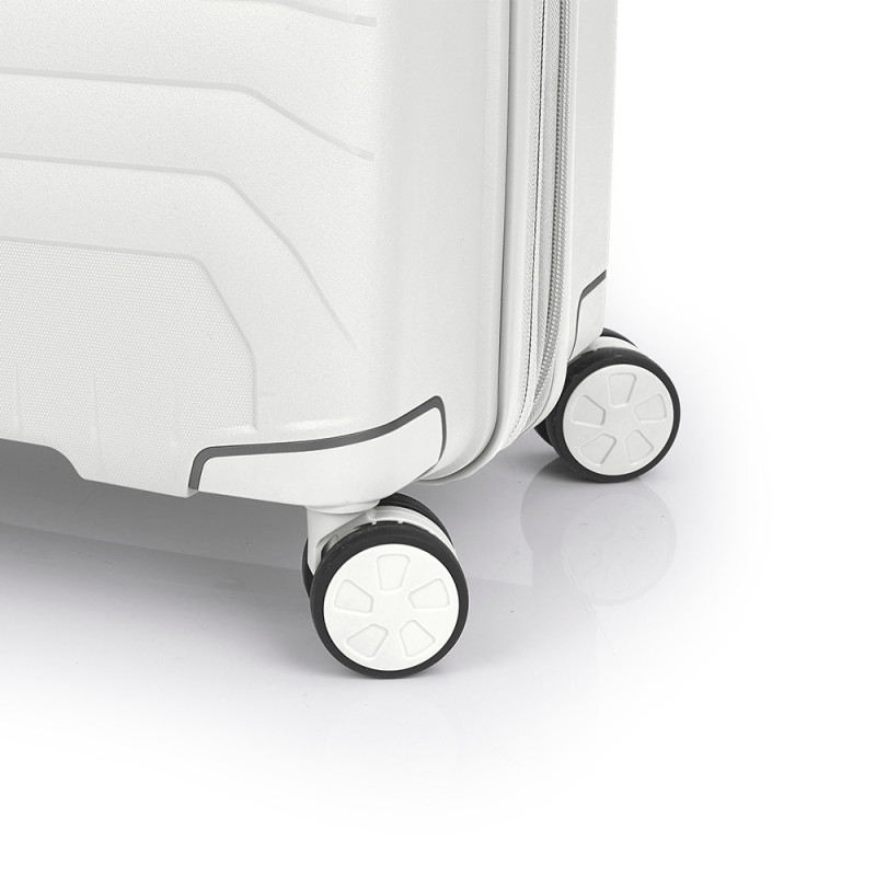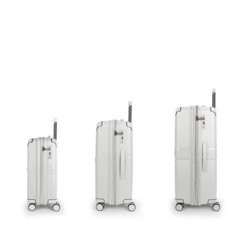 Juego de 3 maletas rígidas (cabina, mediana y grande) expandibles en todos los tamaños. Fabricadas en polipropileno. Su interior esta compuesto por un forro de material reciclado, con un separador y un bolsillo. Cuenta con 4 ruedas dobles multidirección y cerradura TSA. Medidas sin y con expandible: Maleta cabina: 38x54x22/25 cm - Peso: 2,7 kg - Capacidad: 40,4/45,9 L. Maleta mediana: 45x65x27/30 cm - Peso: 3,7 kg - Capacidad: 70/77,9 L. Maleta grande: 51x76x30/33 cm - Peso: 4,4 kg - Capacidad: 105,3/115,8 L.