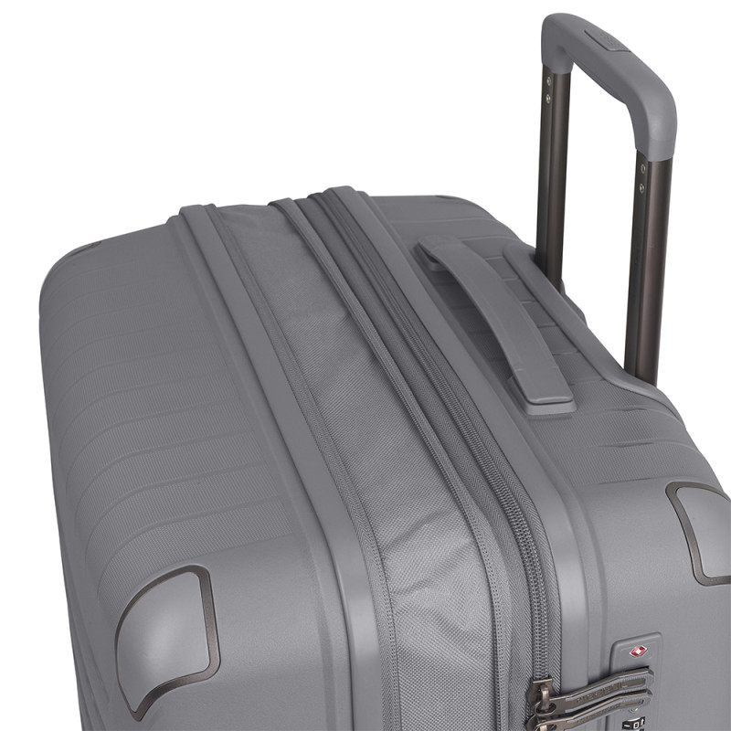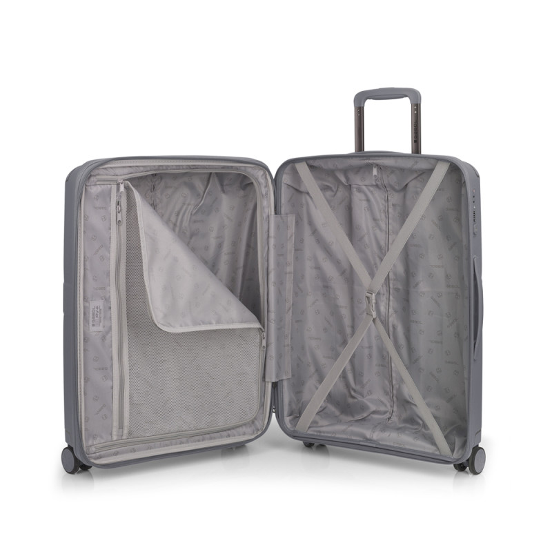 Juego de 2 maletas rígidas (cabina y mediana) expandibles en todos los tamaños. Fabricadas en polipropileno. Su interior esta compuesto por un forro de material reciclado, con un separador y un bolsillo. Cuenta con 4 ruedas dobles multidirección y cerradura TSA. Medidas sin y con expandible: Maleta cabina: 38x54x22/25 cm - Peso: 2,7 kg - Capacidad: 40,4/45,9 L. Maleta mediana: 45x65x27/30 cm - Peso: 3,7 kg - Capacidad: 70/77,9 L.