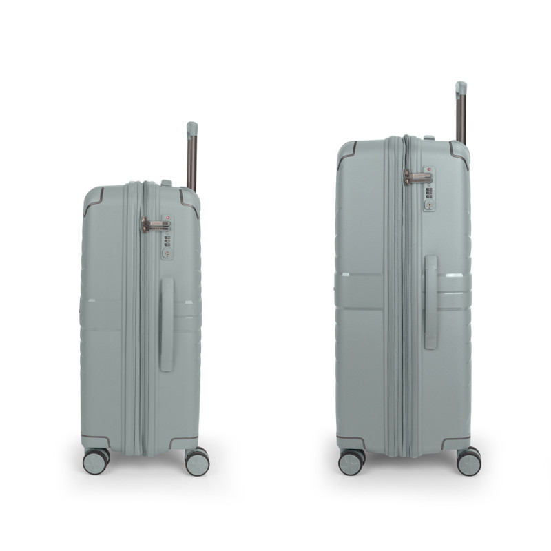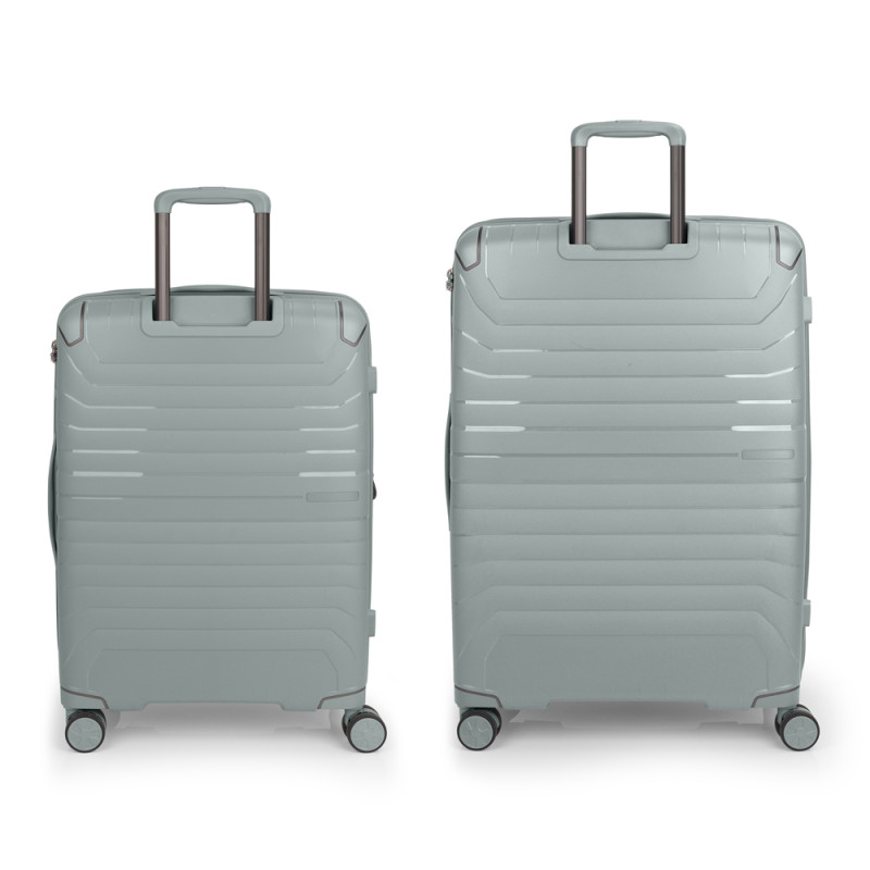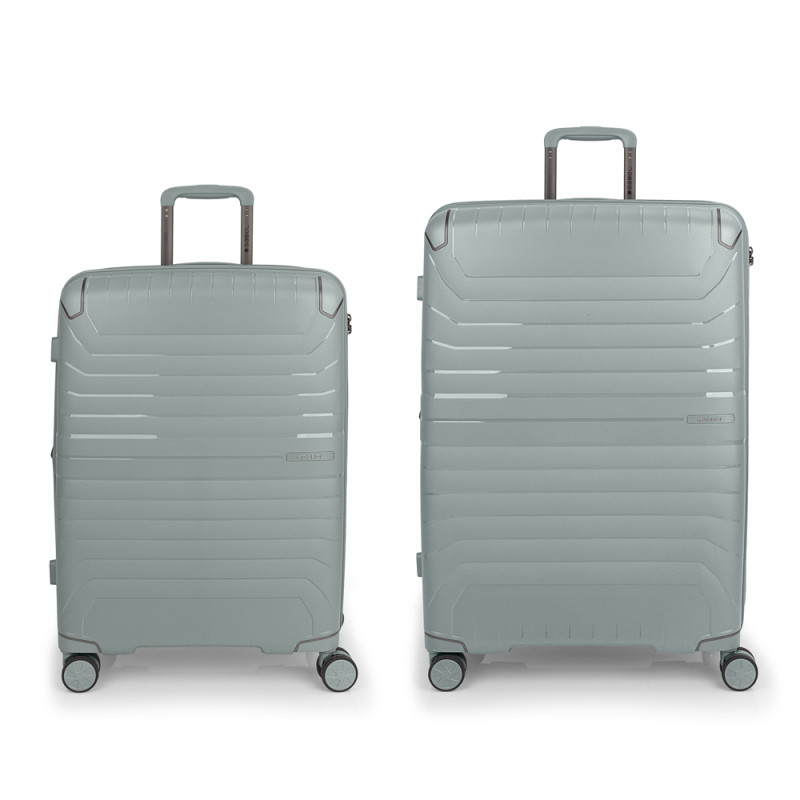 Juego de 2 maletas rígidas (mediana y grande) expandibles en todos los tamaños. Fabricadas en polipropileno. Su interior esta compuesto por un forro de material reciclado, con un separador y un bolsillo. Cuenta con 4 ruedas dobles multidirección y cerradura TSA. Medidas sin y con expandible: Maleta mediana: 45x65x27/30 cm - Peso: 3,7 kg - Capacidad: 70/77,9 L. Maleta grande: 51x76x30/33 cm - Peso: 4,4 kg - Capacidad: 105,3/115,8 L.