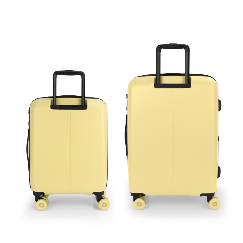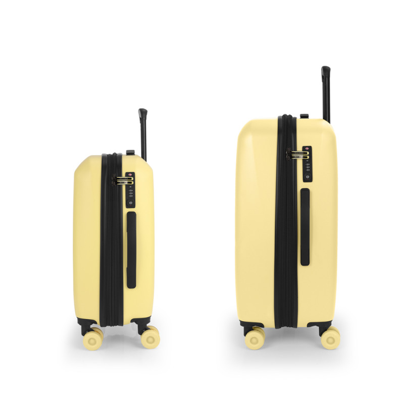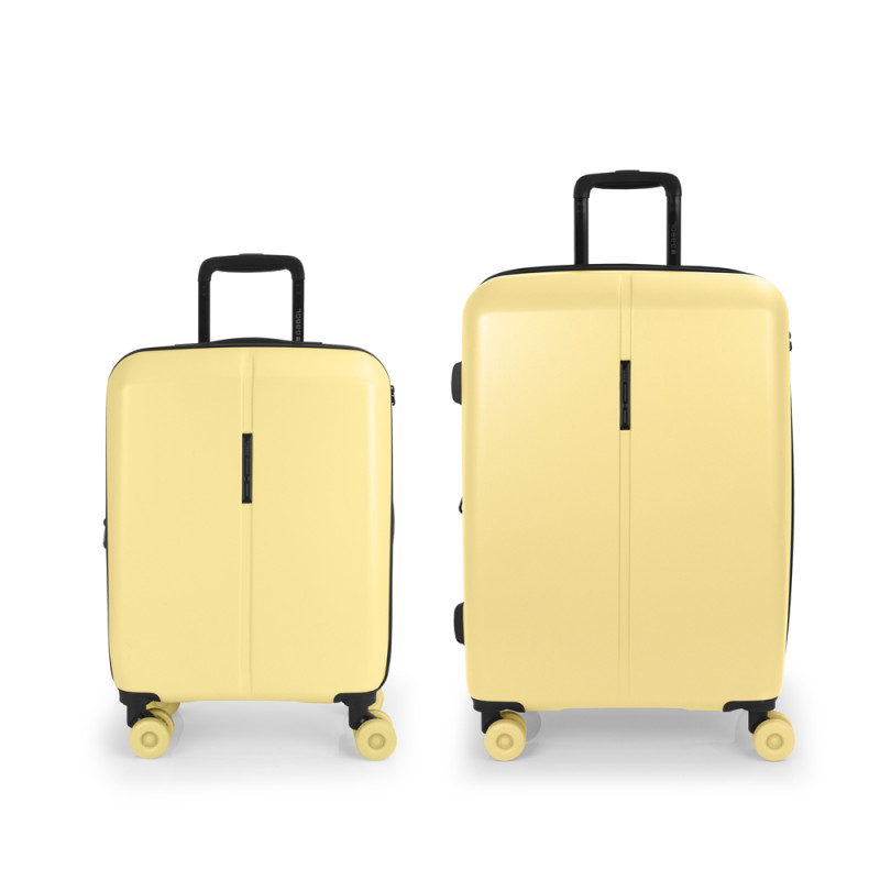 Juego de 2 maletas rígidas (cabina y mediana) expandible en todos los tamaños. Fabricadas en polipropileno. Su interior esta compuesto con un forro de material reciclado, un separador y un bolsillo. Cuenta con 4 ruedas dobles silenciosas y cerradura TSA. Medidas sin y con expandible: Maleta cabina: 39x55x21/24 cm - Peso: 2,9 kg - Capacidad: 37,5/42,8 L. Maleta mediana: 44x65x27/30 cm - Peso: 3,5 kg - Capacidad: 69/76,5 L.