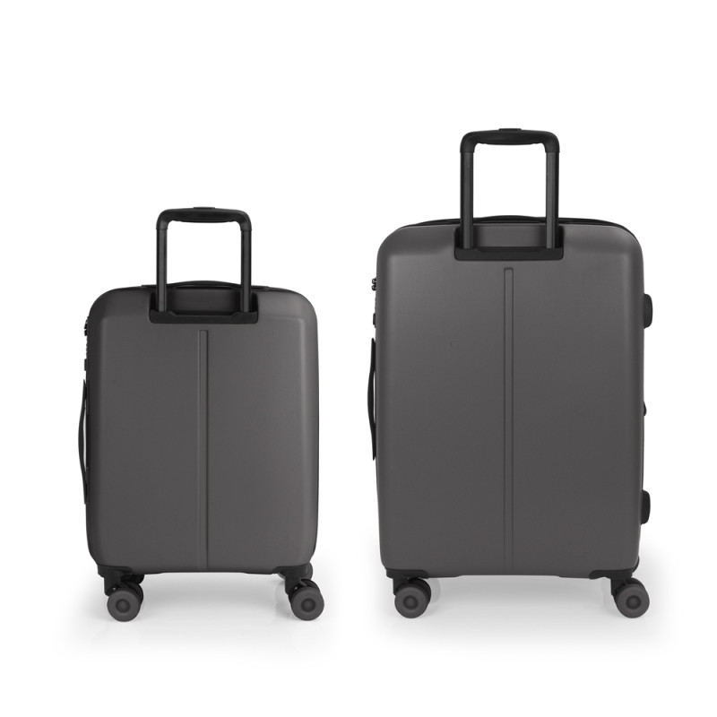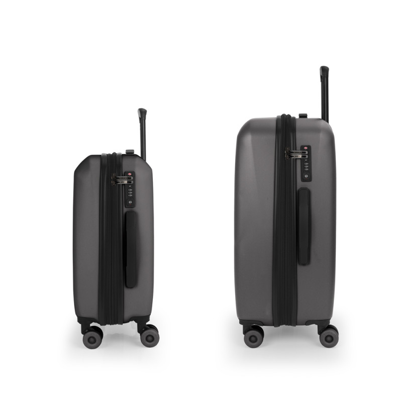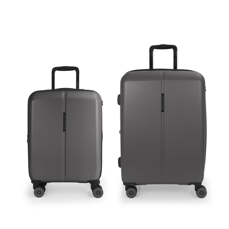 Juego de 2 maletas rígidas (cabina y mediana) expandible en todos los tamaños. Fabricadas en polipropileno. Su interior esta compuesto con un forro de material reciclado, un separador y un bolsillo. Cuenta con 4 ruedas dobles silenciosas y cerradura TSA. Medidas sin y con expandible: Maleta cabina: 39x55x21/24 cm - Peso: 2,9 kg - Capacidad: 37,5/42,8 L. Maleta mediana: 44x65x27/30 cm - Peso: 3,5 kg - Capacidad: 69/76,5 L.