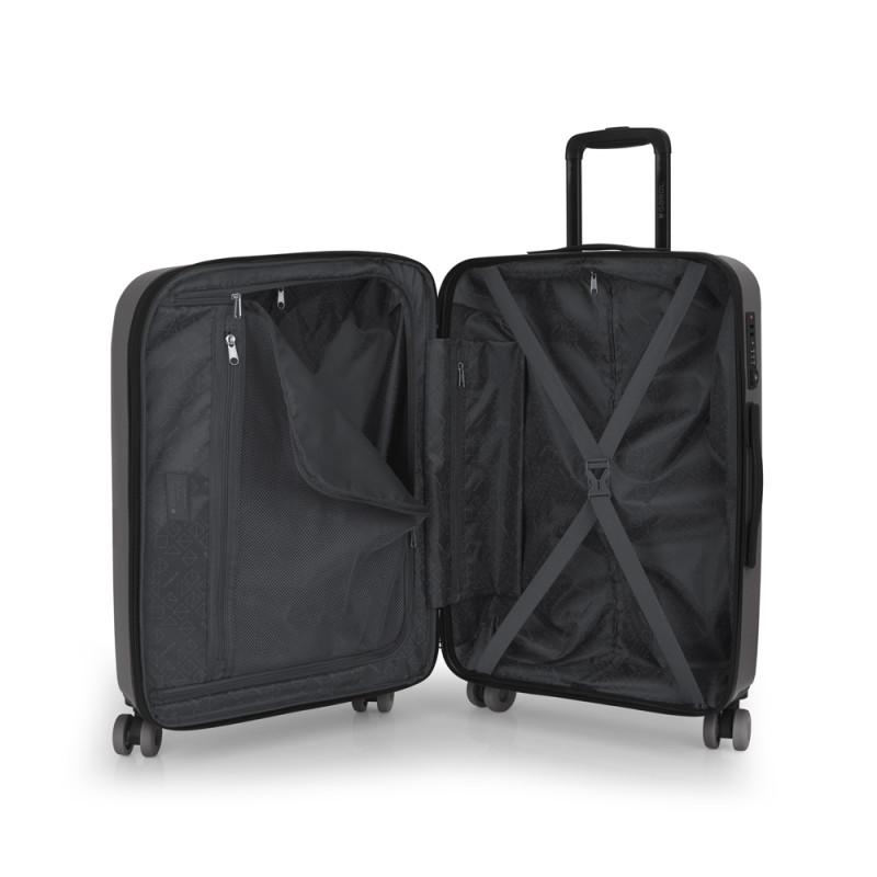 - ASA LATERAL CABINA EXPANDIBLE FORRO: ESTAMPADO GARANTÍA: GARANTÍA 5 AÑOS LIGERO MATERIAL FORRO: MATERIAL RECICLADO RPET MODELO CERRADURA: CB-60A SEGURIDAD: CERRADURA TSA SEPARADOR: SENCILLO SISTEMA DE CIERRE: CREMALLERAS NYLON SISTEMA DE RUEDAS: 4 RUEDAS DOBLES