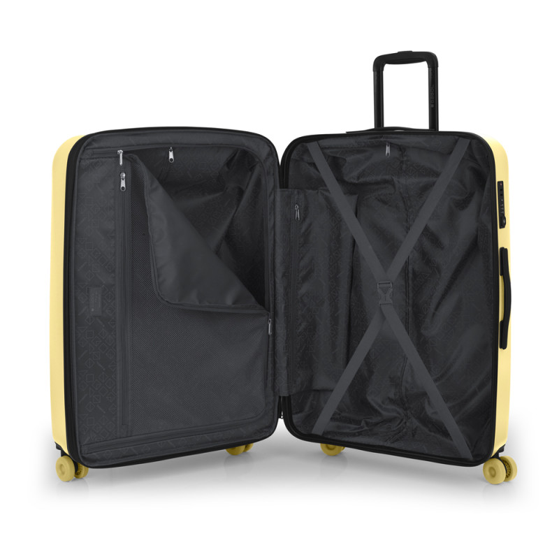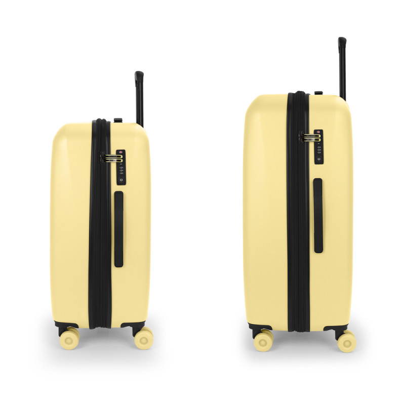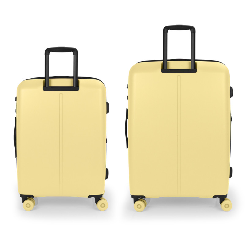 Juego de 2 maletas rígidas (mediana y grande) expandible en todos los tamaños. Fabricadas en polipropileno. Su interior esta compuesto con un forro de material reciclado, un separador y un bolsillo. Cuenta con 4 ruedas dobles silenciosas y cerradura TSA. Medidas sin y con expandible: Maleta mediana: 44x65x27/30 cm - Peso: 3,5 kg - Capacidad: 69/76,5 L. Maleta grande: 51x75x30/33 cm - Peso: 4,2 kg - Capacidad: 102/112,2 L.