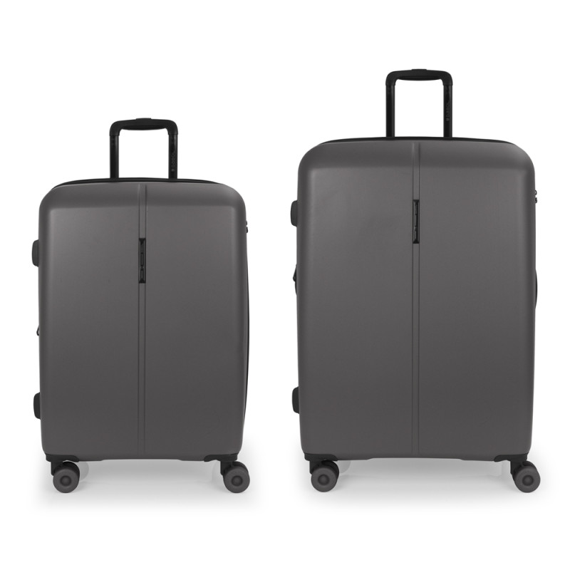 Juego de 2 maletas rígidas (mediana y grande) expandible en todos los tamaños. Fabricadas en polipropileno. Su interior esta compuesto con un forro de material reciclado, un separador y un bolsillo. Cuenta con 4 ruedas dobles silenciosas y cerradura TSA. Medidas sin y con expandible: Maleta mediana: 44x65x27/30 cm - Peso: 3,5 kg - Capacidad: 69/76,5 L. Maleta grande: 51x75x30/33 cm - Peso: 4,2 kg - Capacidad: 102/112,2 L.