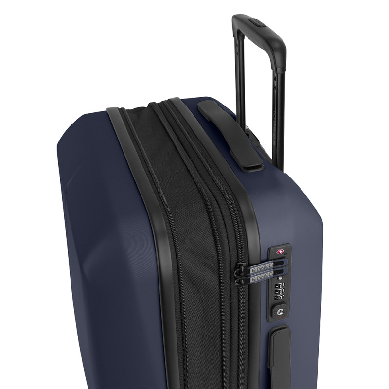 - ASA LATERAL CABINA EXPANDIBLE FORRO: ESTAMPADO GARANTÍA: GARANTÍA 5 AÑOS MATERIAL FORRO: MATERIAL RECICLADO RPET MODELO CERRADURA: CB-60A SEGURIDAD: CERRADURA TSA SEPARADOR: SENCILLO SISTEMA DE CIERRE: CREMALLERAS NYLON SISTEMA DE RUEDAS: 4 RUEDAS DOBLES