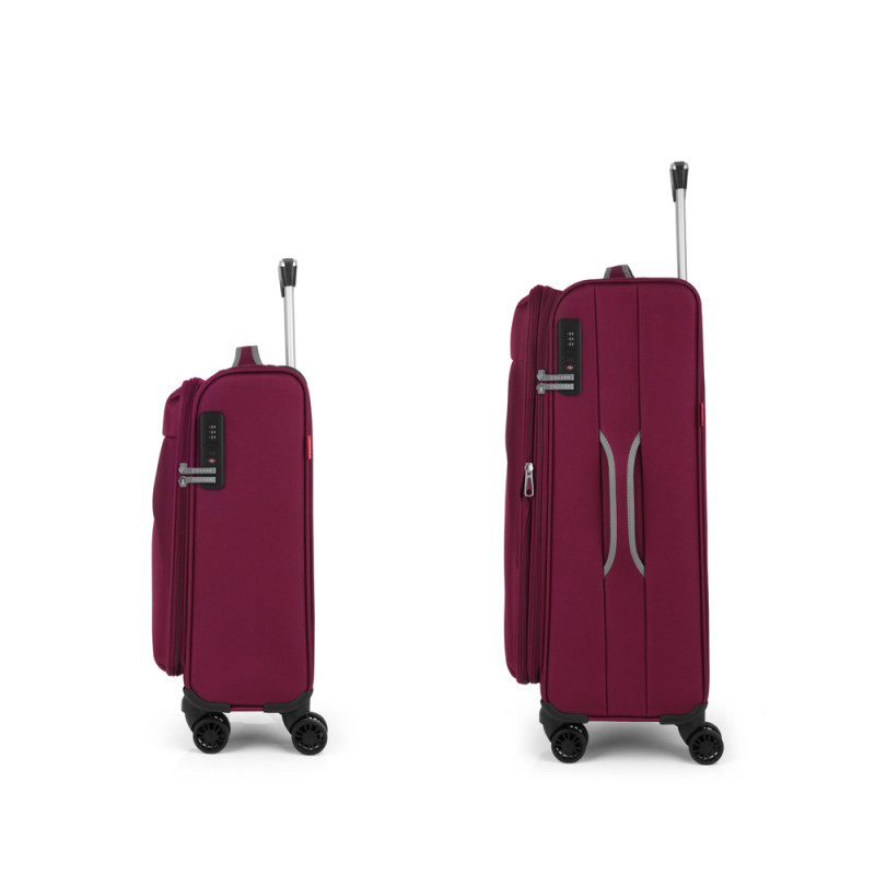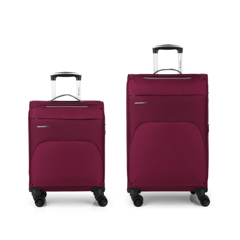 Set de 2 maletas (cabina y mediana) blandas, con capacidad hasta 103 L. El material de fabricación es poliéster y su interior está compuesto por un forro de alta calidad y separador interior. Tiene dos tamaños diferentes para tus necesidades de viaje, maleta de cabina apta como equipaje de mano. Cerradura TSA.