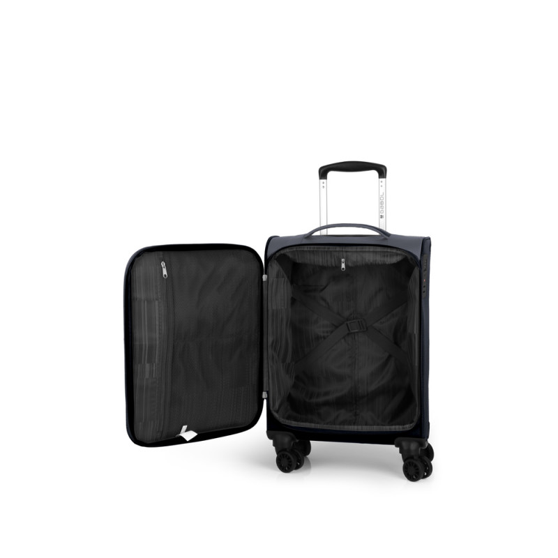 Set de 3 maletas (cabina, mediana y grande) blandas, con capacidad hasta 199,6 L. El material de fabricación es poliéster y su interior está compuesto por un forro de alta calidad y separador interior. Tiene tres tamaños diferentes para cubrir todas tus necesidades de viaje. Incluye una maleta de cabina apta como equipaje de mano. Cerradura TSA.