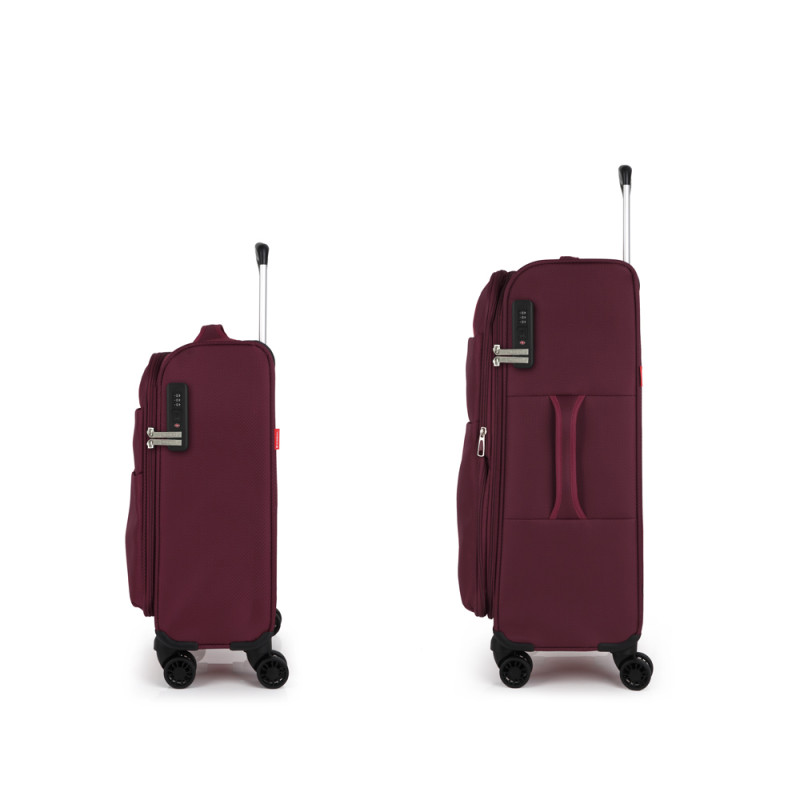 Set de 2 maletas (cabina y mediana) blandas, con capacidad hasta 92 L. El material de fabricación es poliéster y su interior está compuesto por un forro de alta calidad y separador interior. Tiene dos tamaños diferentes para tus necesidades de viaje, maleta de cabina apta como equipaje de mano. Cerradura TSA.