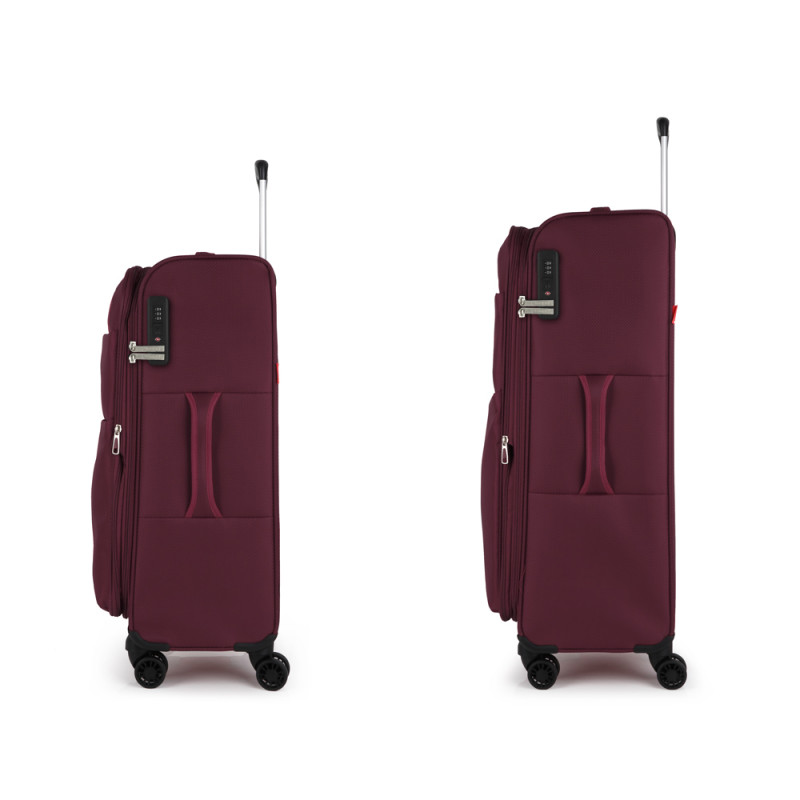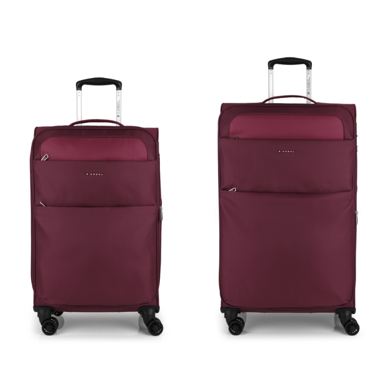 Set de 2 maletas (mediana y grande) blandas, con capacidad hasta 152 L. El material de fabricación es poliéster y su interior está compuesto por un forro de alta calidad y separador interior. Tiene dos tamaños mediano y grande perfectos para viajes más largos. Puede hacerse expandible para una mayor capacidad y peso ligero. Cerradura TSA.
