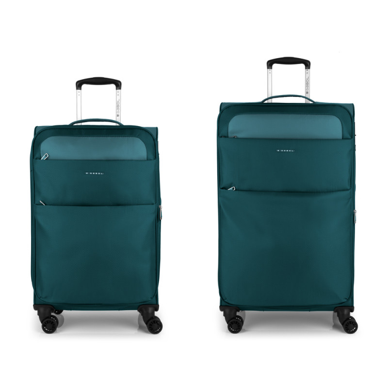 Set de 2 maletas (mediana y grande) blandas, con capacidad hasta 152 L. El material de fabricación es poliéster y su interior está compuesto por un forro de alta calidad y separador interior. Tiene dos tamaños mediano y grande perfectos para viajes más largos. Puede hacerse expandible para una mayor capacidad y peso ligero. Cerradura TSA.