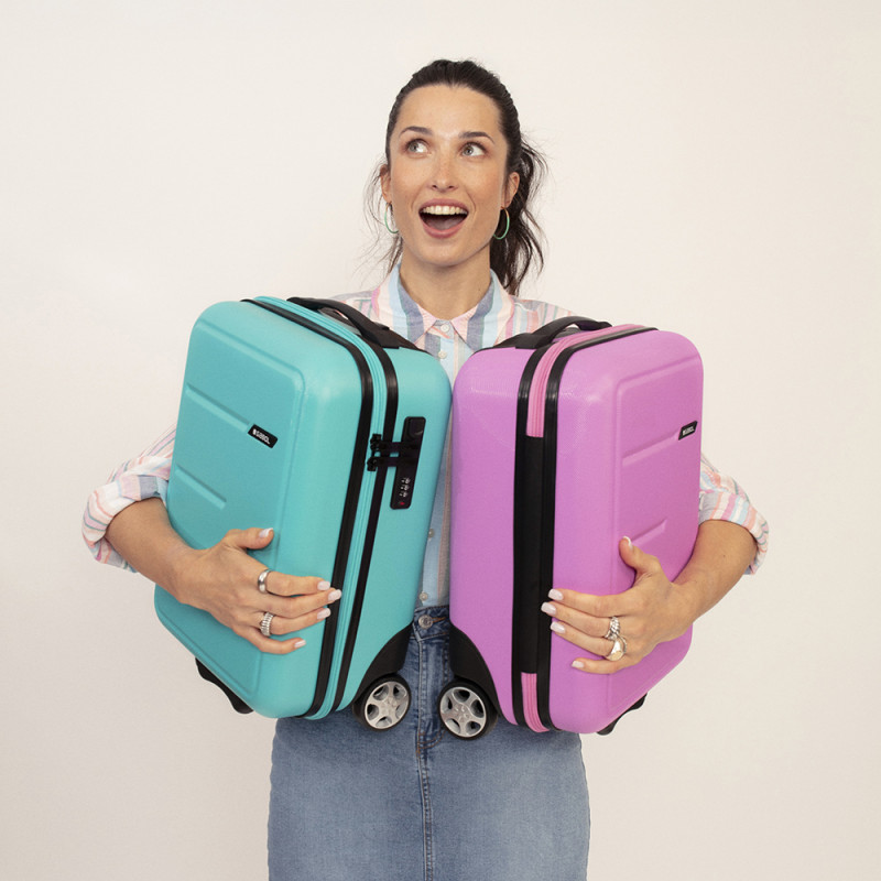 Equipaje de mano rígida y con capacidad hasta 22,8 L. Fabricadas en ABS. Su interior esta compuesto por un forro, con un separador y un bolsillo. El equipaje de mano cuenta con 2 ruedas simples. Cerradura de combinación. Medidas sin y con expandible: Equipaje de mano: 30 x 42 x 20 cm - Peso: 2,4 kg - Capacidad: 22,8 L.