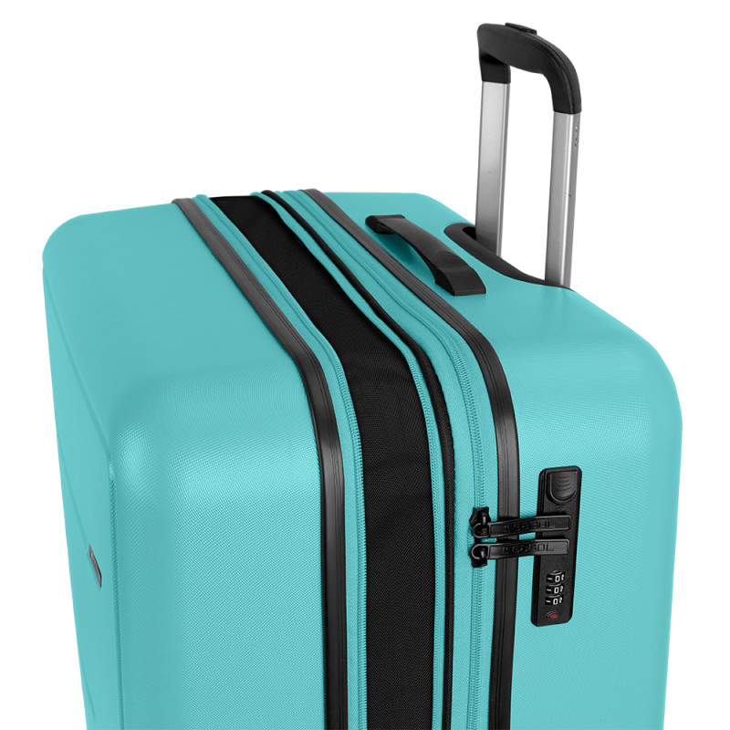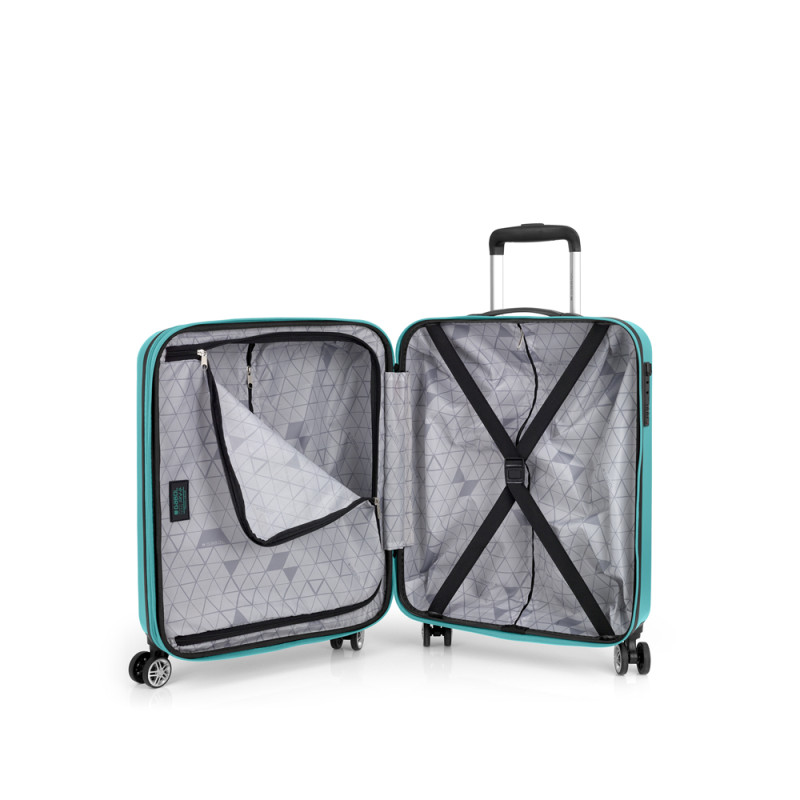 Maleta cabina rígida, con expandible y con capacidad hasta 41,1 L. Fabricadas en ABS. Su interior esta compuesto por un forro, con un separador y un bolsillo. Cuentan con 4 ruedas dobles multidirección. Cerradura de combinación. Medidas sin y con expandible: Maleta cabina: 40x55x21/24cm - Peso: 3,1 kg - Capacidad: 41,1/47 L.
