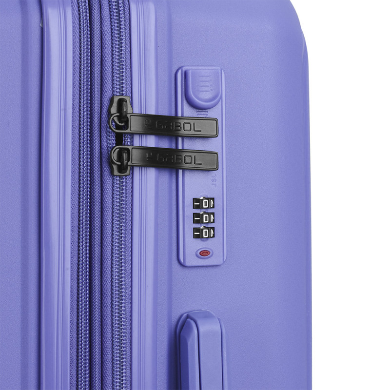 ASA LATERAL CABINA EXPANDIBLE FORRO: ESTAMPADO MATERIAL FORRO: POLIESTER 210 MODELO CERRADURA: JY-701 SEGURIDAD: CERRADURA COMBINACIÓN SEPARADOR: SENCILLO SISTEMA DE CIERRE: CREMALLERAS NYLON SISTEMA DE RUEDAS: 4 RUEDAS DOBLES