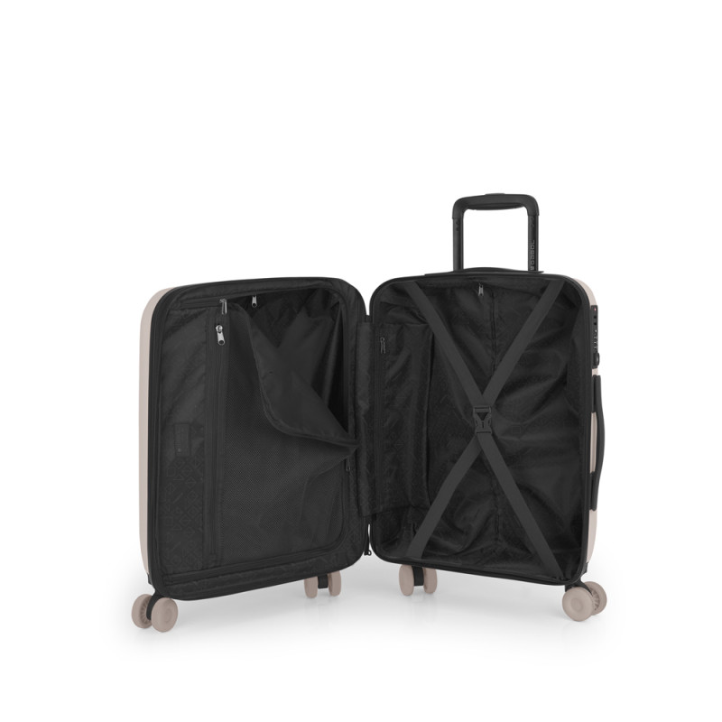 Maleta de cabina rígida, expandible. Fabricada en polipropileno. Su interior esta compuesto con un forro de material reciclado, un separador y un bolsillo. Cuenta con 4 ruedas dobles silenciosasy cerradura TSA. Medidas sin y con expandible: Maleta cabina: 38x55x20/23 cm - Peso: 2,7 kg - Capacidad: 36,5/42 L.
