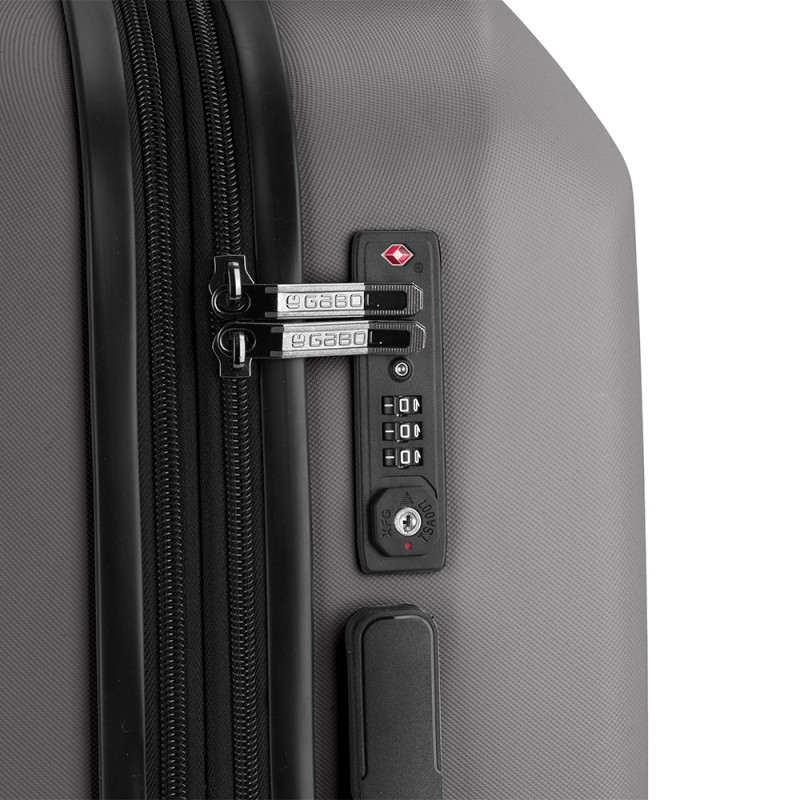 - ASA LATERAL CABINA EXPANDIBLE FORRO: ESTAMPADO GARANTÍA: GARANTÍA 5 AÑOS MATERIAL FORRO: MATERIAL RECICLADO RPET MODELO CERRADURA: CB-60A SEGURIDAD: CERRADURA TSA SEPARADOR: SENCILLO SISTEMA DE CIERRE: CREMALLERAS NYLON SISTEMA DE RUEDAS: 4 RUEDAS DOBLES