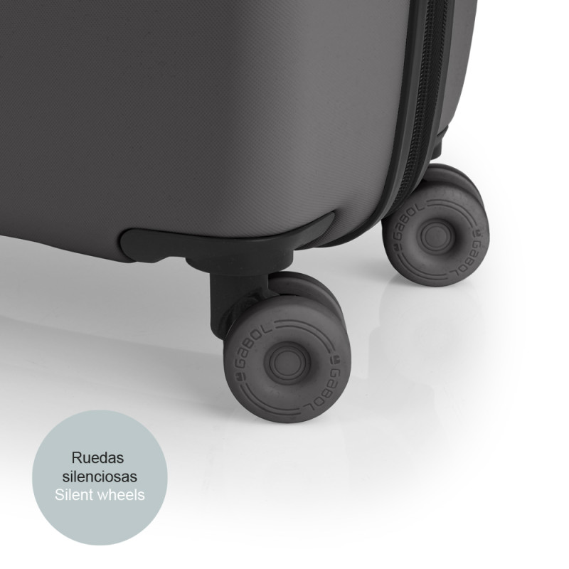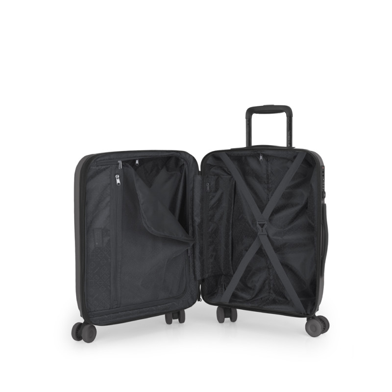 Maleta de cabina rígida, expandible. Fabricada en polipropileno. Su interior esta compuesto con un forro de material reciclado, un separador y un bolsillo. Cuenta con 4 ruedas dobles silenciosasy cerradura TSA. Medidas sin y con expandible: Maleta cabina: 38x55x20/23 cm - Peso: 2,7 kg - Capacidad: 36,5/42 L.