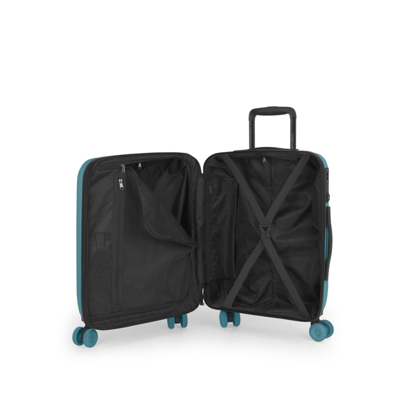 Maleta de cabina rígida, expandible. Fabricada en polipropileno. Su interior esta compuesto con un forro de material reciclado, un separador y un bolsillo. Cuenta con 4 ruedas dobles silenciosasy cerradura TSA. Medidas sin y con expandible: Maleta cabina: 38x55x20/23 cm - Peso: 2,7 kg - Capacidad: 36,5/42 L.