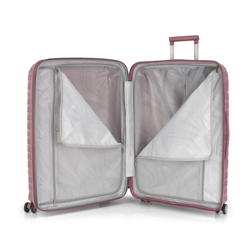 Maleta grande Kiba rígida con capacidad de 113,6/124,2 L y 4 ruedas dobles. Fabricada en polipropileno. Su interior está compuesto por un forro de alta calidad con doble separador y bolsillos. Cerradura TSA. Cremalleras de seguridad. 4 ruedas multidirección. 10 años de garantía. Medidas Maleta Grande: 76x49x32/35 cm - Peso: 4,5 kg - Capacidad: 113,6/124,2 L.
