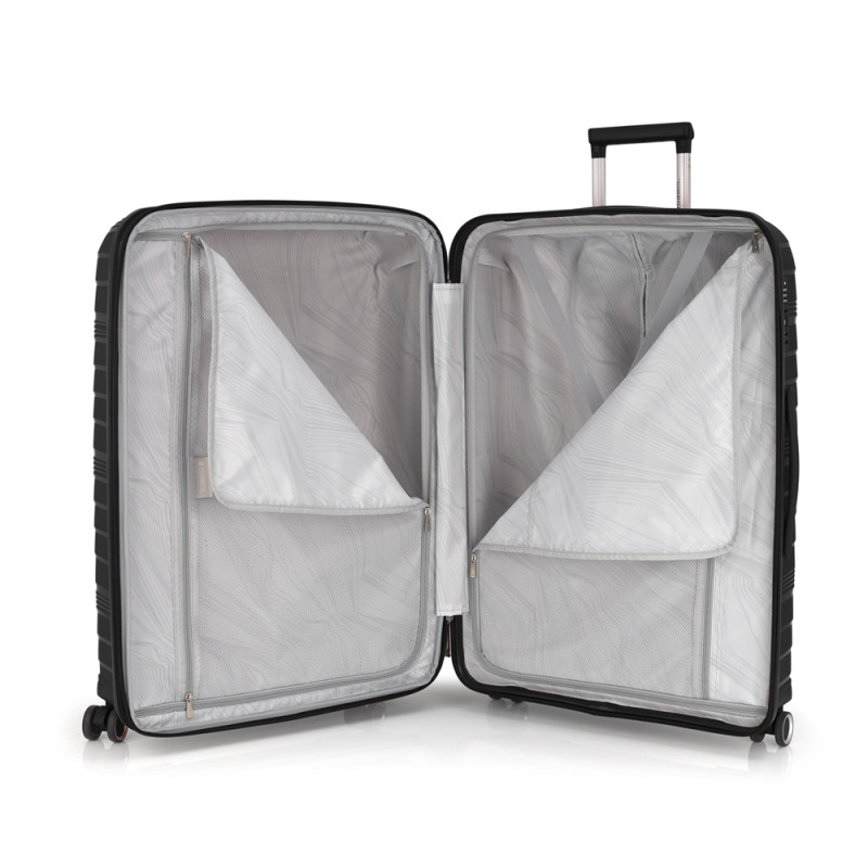 Maleta grande Kiba rígida con capacidad de 113,6/124,2 L y 4 ruedas dobles. Fabricada en polipropileno. Su interior está compuesto por un forro de alta calidad con doble separador y bolsillos. Cerradura TSA. Cremalleras de seguridad. 4 ruedas multidirección. 10 años de garantía. Medidas Maleta Grande: 76x49x32/35 cm - Peso: 4,5 kg - Capacidad: 113,6/124,2 L.