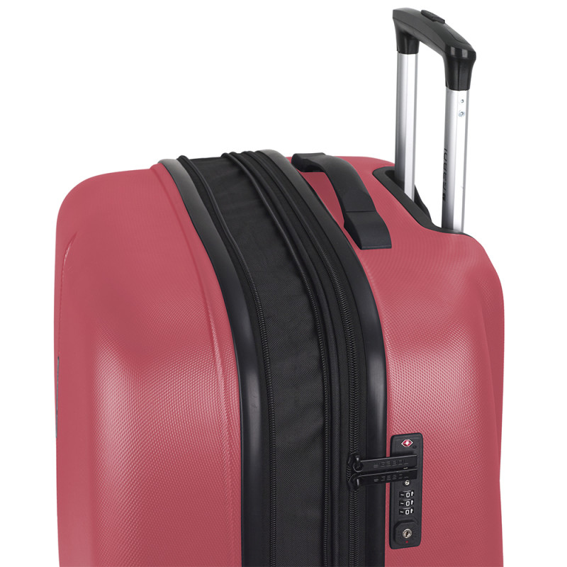 Maleta grande rígida expandible y 4 ruedas dobles multidirección. Fabricada en ABS. Su interior está compuesto por un forro de alta calidad con separador y bolsillo. Cerradura TSA. Medidas sin y con expandible: Maleta Grande: 77x54x29/32,5 cm - Peso: 4,6 kg - Capacidad: 100/112 L.