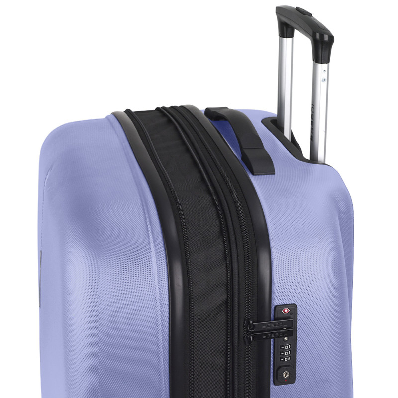 Maleta grande rígida expandible y 4 ruedas dobles multidirección. Fabricada en ABS. Su interior está compuesto por un forro de alta calidad con separador y bolsillo. Cerradura TSA. Medidas sin y con expandible: Maleta Grande: 77x54x29/32,5 cm - Peso: 4,6 kg - Capacidad: 100/112 L.