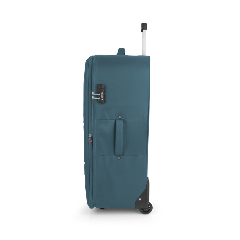 Maleta grande blanda, expandible y 2 ruedas. Fabricada en Poliéster. Su interior está compuesto con un bolsillo organizador. Cerradura de combinación. Medidas sin y con expandible: Maleta Grande: 47x76x31,5 cm - Peso: 3,2 kg - Capacidad: 89,5/105,5 L.