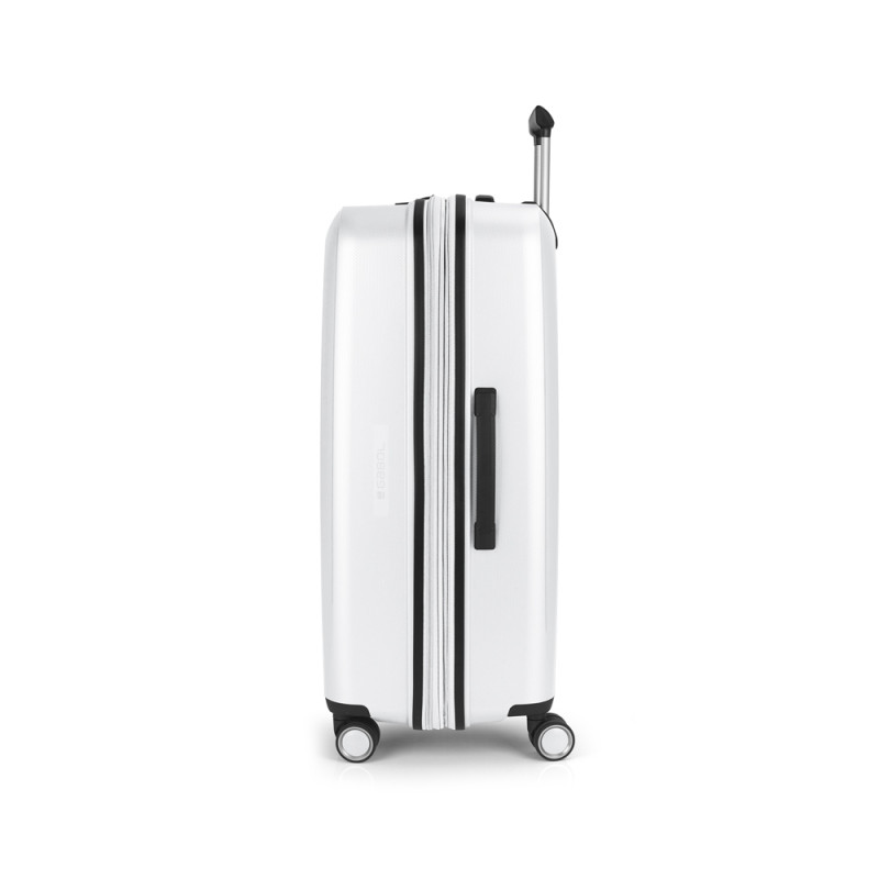 Maleta grande rígida, expandible y 4 ruedas dobles multidirección. Fabricadas en Polipropileno. Su interior esta compuesto por un forro de material reciclado, con doble separador y bolsllos. Cremallera de seguridad. Cerradura TSA. 10 años de garantía. Medidas sin y con expandible: Maleta Grande: 51x75x31/34 cm - Peso: 4,5 kg - Capacidad: 109/119,6 L. Maleta Grande: 51x75x31/34 cm