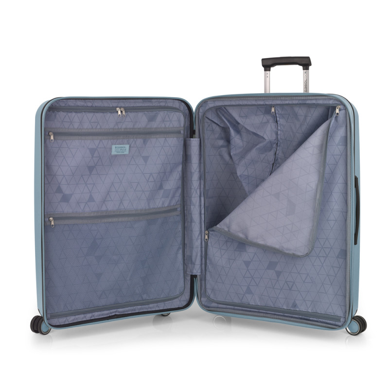 Maleta grande rígida, expandible y 4 ruedas dobles multidirección. Fabricadas en Polipropileno. Su interior esta compuesto por un forro de material reciclado, con doble separador y bolsllos. Cremallera de seguridad. Cerradura TSA. 10 años de garantía. Medidas sin y con expandible: Maleta Grande: 51x75x31/34 cm - Peso: 4,5 kg - Capacidad: 109/119,6 L. Maleta Grande: 51x75x31/34 cm