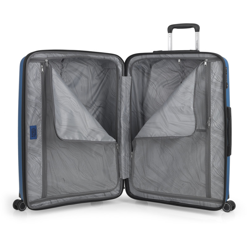Maleta grande rígida, expandible y 4 ruedas dobles multidirección. Fabricadas en Polipropileno. Su interior esta compuesto por un forro de material reciclado, con doble separador y bolsllos. Cremallera de seguridad. Cerradura TSA. 10 años de garantía. Medidas sin y con expandible: Maleta Grande: 49x76x32/35 cm - Peso: 4,7 kg - Capacidad: 107,5/117,6 L. Maleta Grande: 49x76x32/35 cm