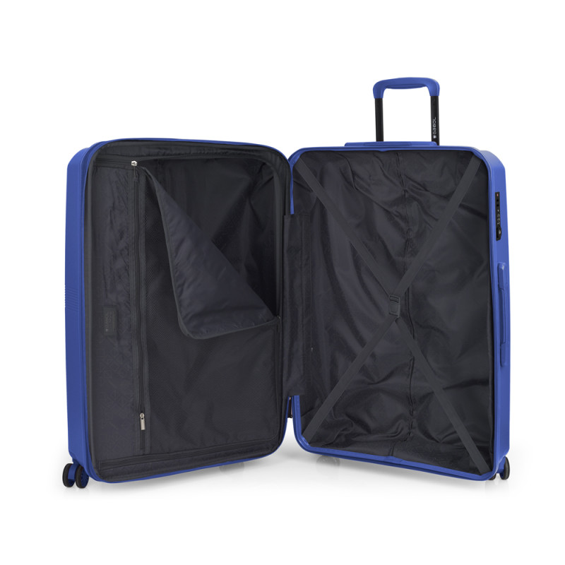 Maleta grande rígida, con expandible y con capacidad hasta 93,7 L. Fabricada en polipropileno. Su interior esta compuesto por un forro, con un separador y un bolsillo. 4 ruedas dobles multidirección. Cerradura de combinación. Medidas sin y con expandible: Maleta grande: 50x74x29/32 cm - Peso: 4,2 kg - Capacidad: 93,7/103,4 L.